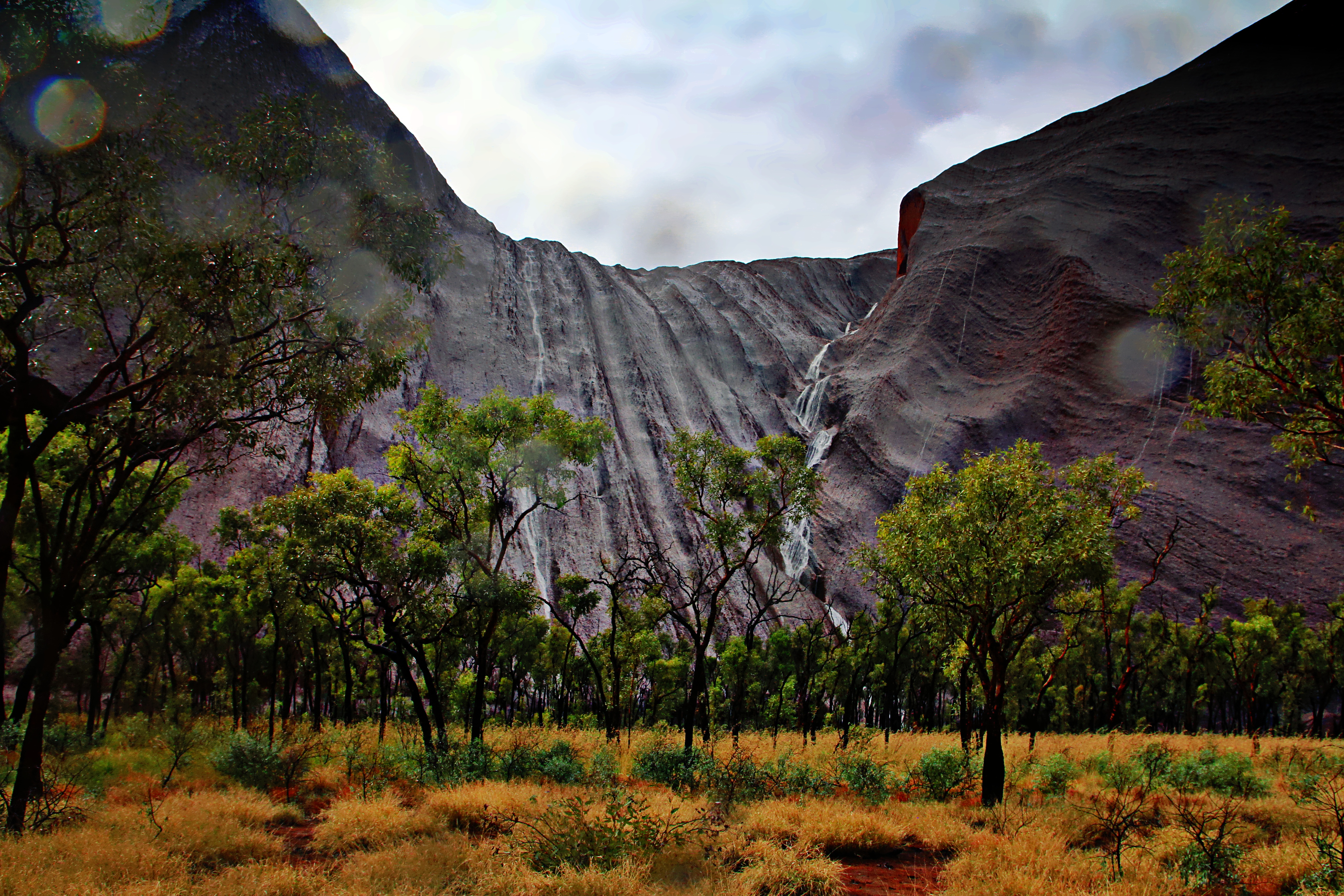 RAIN! Water falls on Uluru.