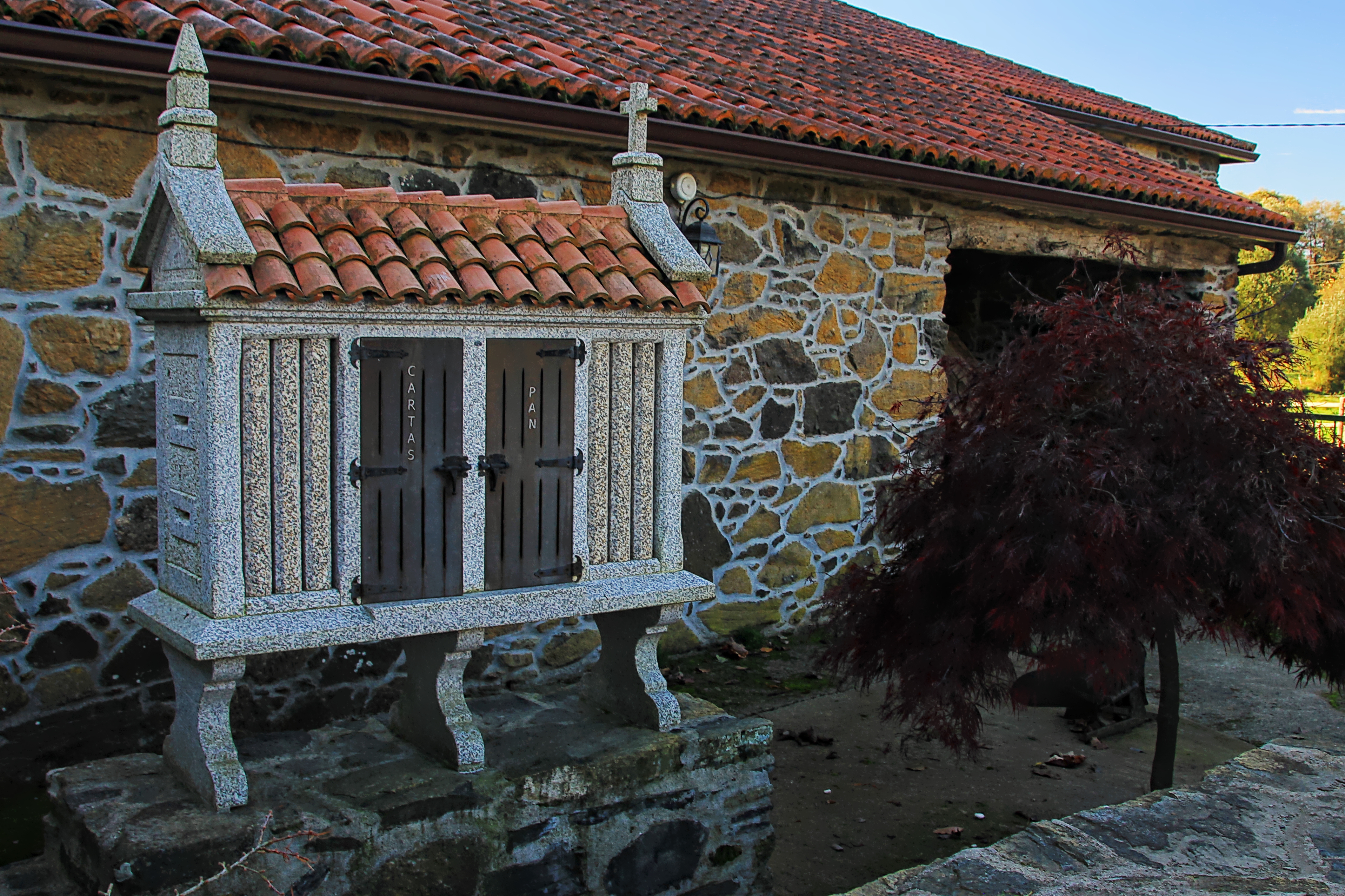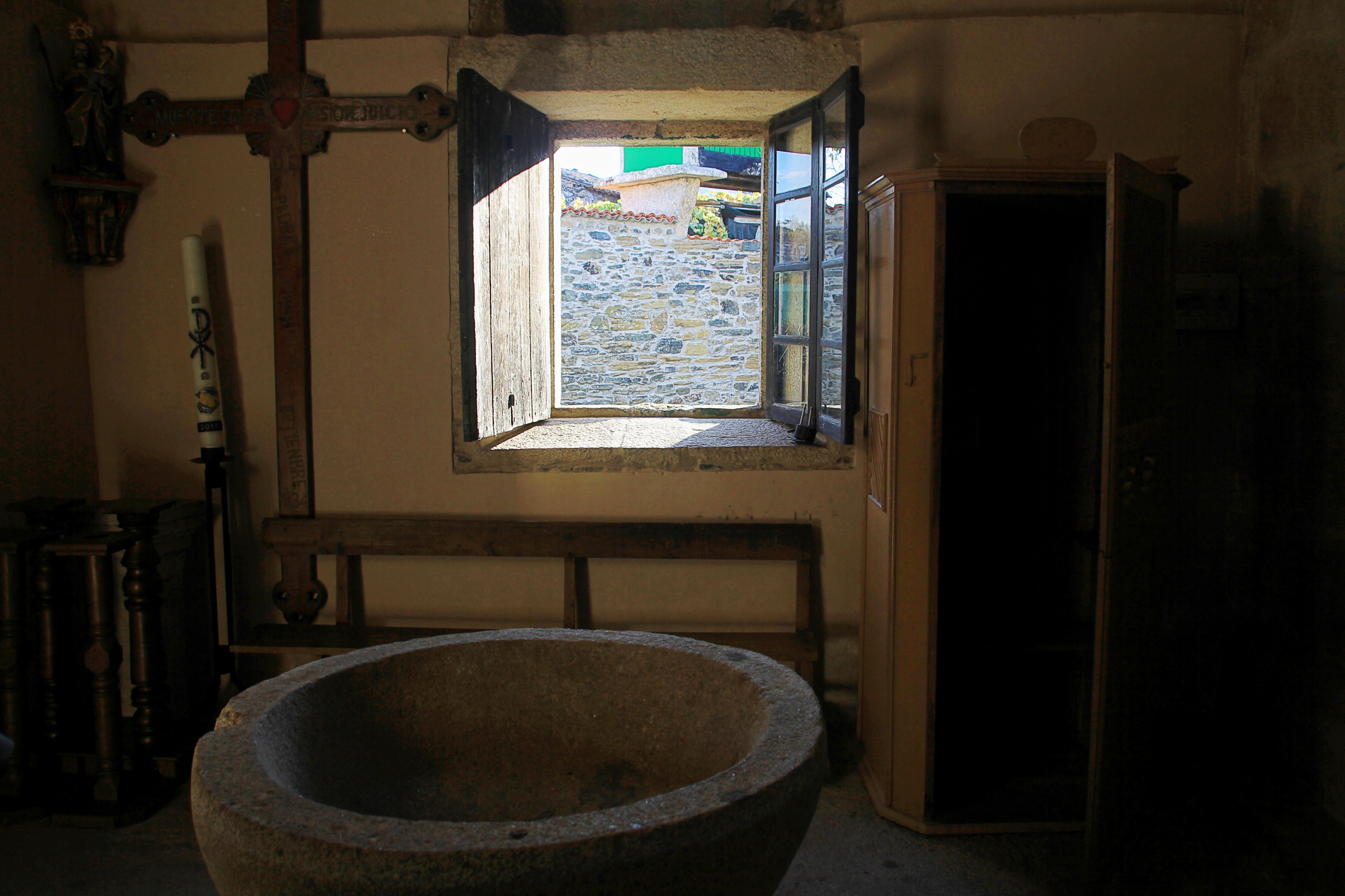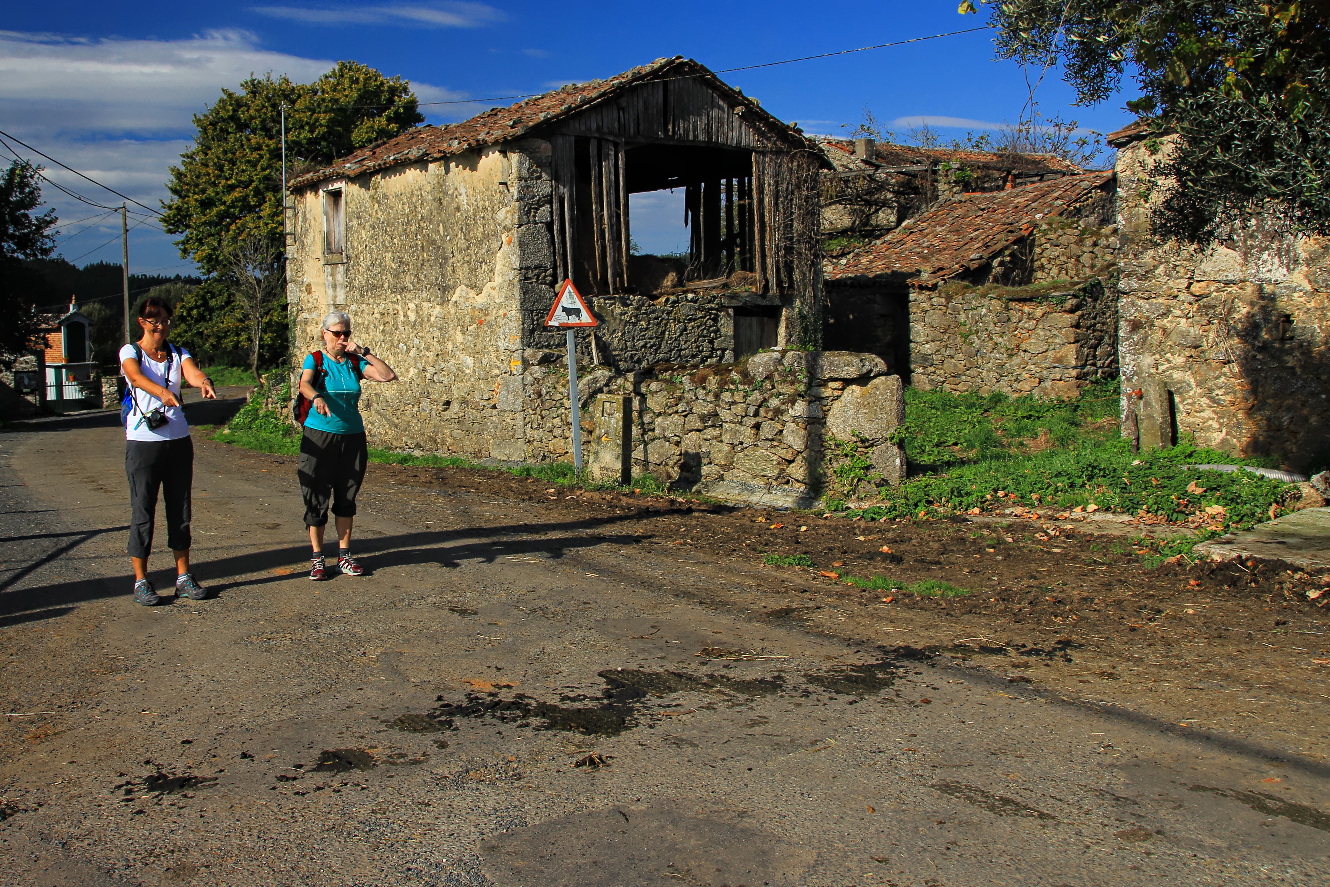 We caught up with Rita and David again today but didn’t see mushroom girls. I’m hoping they didn’t make any mistakes in their mushroom harvest. A local couple were set up along the trail with their donkeys. Solomon had “buen camino” written on his flank and didn’t seem too impressed by it. His owner played the pan flute. The sound was beautiful and fit right in with the woods, stream and spiritual nature of the camino. While there we met an 80 year old man walking with his son. They’d come a lot farther than we had.