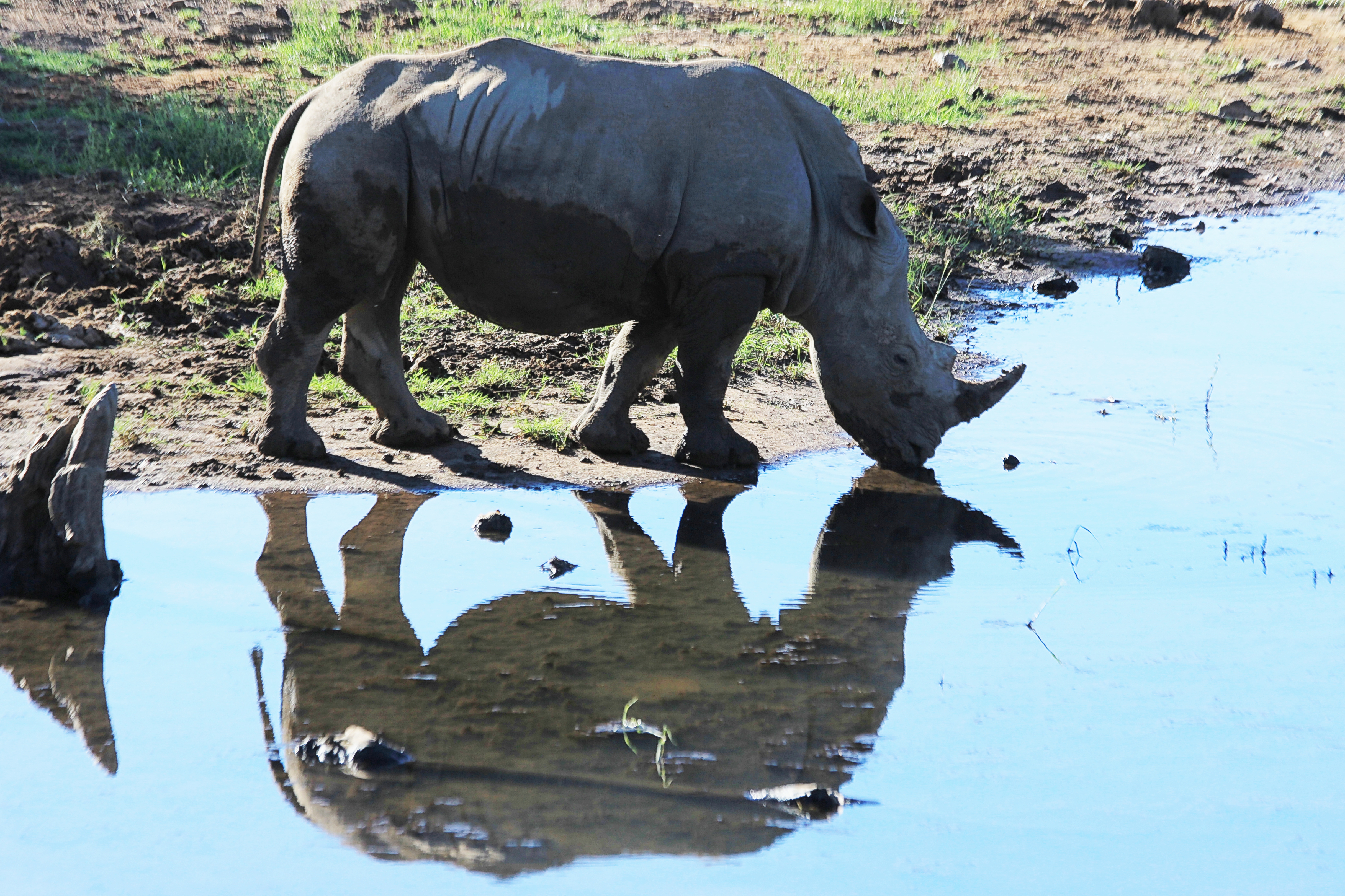 5:15 am came early and we headed off again to find animals. It was an exciting day. We followed a pride of 11 lions who ended up crossing the road right in front and behind our vehicle. I looked one lioness right in the eye. Later, at a view point by a watering hole, we saw a black mamba (VERY poisonous snake) and were watching a croc and some lions off in the distance when a big, beautiful male lion strolled down to take a drink.