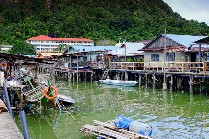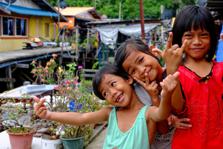 Our hosts said we didn’t need to spend the money on a city tour. He made us a map, told us what highlights to see and sent us on our way. He even lent us his umbrella. Our first stop was Sim Sim, a village on the water just outside Sandakan. It was great fun wandering the “streets” that stretch out over the ocean. People were incredibly friendly and we ended up with an entourage of children whose only English was “HELLO” and “SELFIE”. So of course we took pictures and video and showed it to them. Adults nearby laughed at their antics. A peak inside some of the homes revealed clean, spacious, living areas and many had cats or chickens in cages and lots of plants.