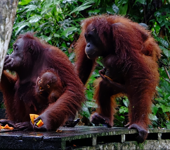 After being warmly welcomed at Uncle Tan’s Wildlife adventure base camp we set out to visit the orang utan sanctuary in Sepilok. It was kind of disappointing in that it felt more like a zoo than a natural habitat but good work IS being done there. We watched the orphaned babies playing on the jungle gym (through glass) for a while then went to watch the feeding. The adults are fed only bananas. The idea being that they get tired of the diet and try harder to fend for themselves, and therefore end up rehabilitated into the wild.