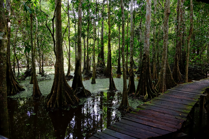 The next morning we were in the boat again by 6:30 am for more animal viewing. Back to the camp for breakfast then in the boat again to the protected area for a hike. That trail was MUDDY! We slipped and slid a lot and at times were ankle deep in mud. We returned to camp, hot, sweaty and mosquito bitten but altogether pleased with all we’d seen.