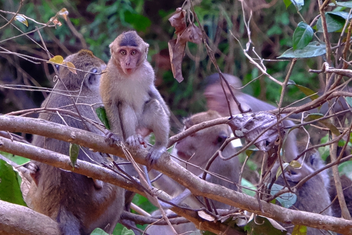 After a delicious lunch we boarded the van and rode about an hour to river where we boarded a small motor boat. The ride up the Kinabatangan river to Uncle Tan’s adventure camp took about an hour and we saw lots of wild life along the way, especially long tailed macaques.