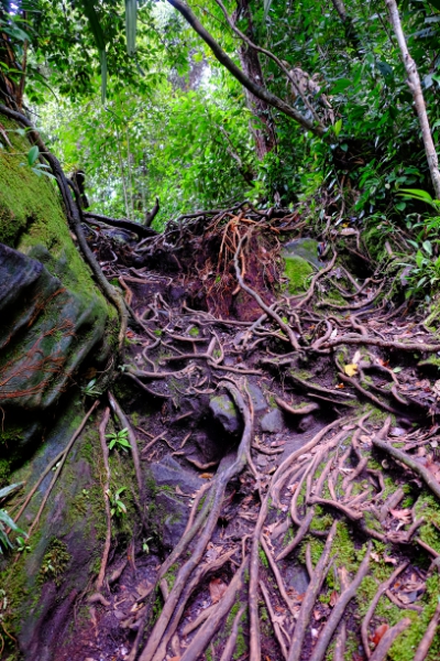 Our host’s son David showed us where to catch the 8 am bus to Bako along with a couple from the Czech Republic. That took us to a dock and office area where we checked into the park and paid for a boat transfer to the Island park. We ran into Frankie and Hugo so decided to spend the day together. Once at the park we dropped off our bag (we didn’t take much) and headed for the trails. Trail #3 is supposed to be easy. It’s only 1.5 km but took us 2 hours as it involves climbing over roots and rocks and up and down ladder like steps and several stops to watch monkeys. At the beach we saw a boat so got together and hired him to take us on a bit of a tour. It was a great way to see some of the park!
