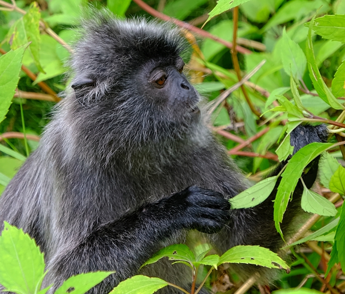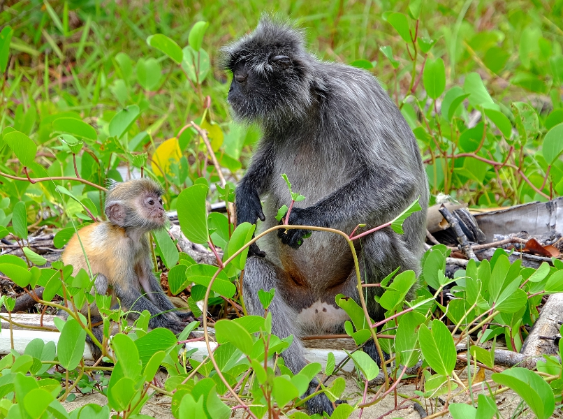 In the morning we did some more hikes then spent some time near the beach just reading in a gazebo. The day before, while we were sweating like crazy trekking and looking for monkeys, others had seen silver leaf monkeys while drinking coffee in the cafe. So we thought we’d try that. It didn’t work. No silver leaf monkeys for us. Oh well. We did see LOTS the night before.