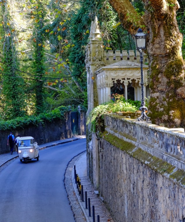 We’d arranged to meet Miguel Carodoso of MC Photo tours and he was waiting for us before the appointed time. He drove us to Sintra where we walked through town and up to the castle Quinta da Regaleira . We messed with Miguel’s tour plan when we climbed towers and entered tunnels as we found them, but he didn’t seem to mind.  There are several castles to visit in Sintra but you’d need more than a day to see them all. We stopped in a cafe to taste some of Sintra’s local treats and across the street for a gingaha (liquer in a dark chocoate cup)