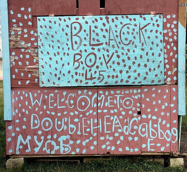 Bermudian Landing. Hmmm. No bus from here so he showed us where to catch it a few streets over. That one was an adventure. It was crowded. Barb saw a chicken. People were buying snacks through the windows when it stopped. A man behind me was hollering at people through the window. Seems he had a lot of friends. Total cost $7.50 BZE each. It took a bit longer, about 2.5 hours vs 1 hour in a taxi but it was much more entertaining.