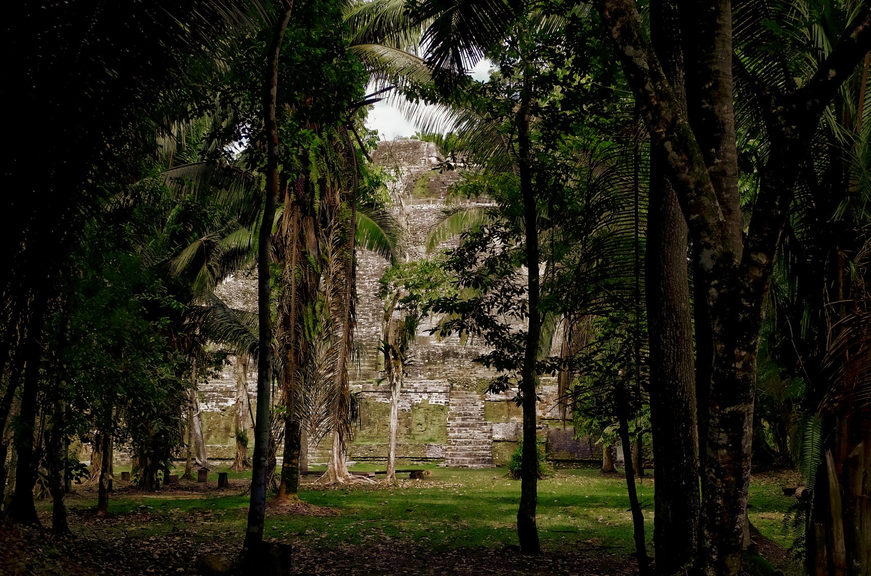 Julian picked us up promptly at 8 am and drove us to Bat’s landing where we boarded a boat operated by Carlos. He pointed out creatures and some fauna along the way and guided us through Lamanai. The forecast was rain but it held off all day and we managed to climb a couple of temples. The high one is not for those who fear heights.