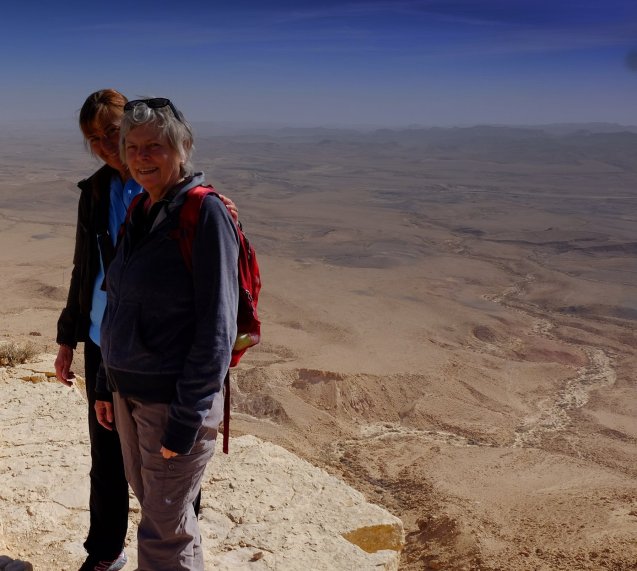 Armed with maps and advertising things we enjoyed a coffee in a cafe overlooking the Maktesh crater and planned our next few days. Then we set off to hike the rim as far as the Camel lookout. That’s pretty cool. It’s a big rock that really does look like a camel. Parts of the path along the edge are a little scary as it’s loose gravel and kind of close to the edge for us fraidy cats. We did it and survived. 😉