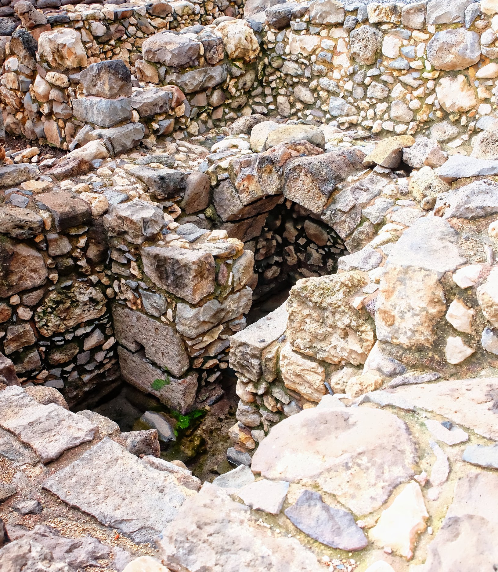 One of the only original things in Nazareth village. Relics of a hole where grapes were crushed and drained into another one