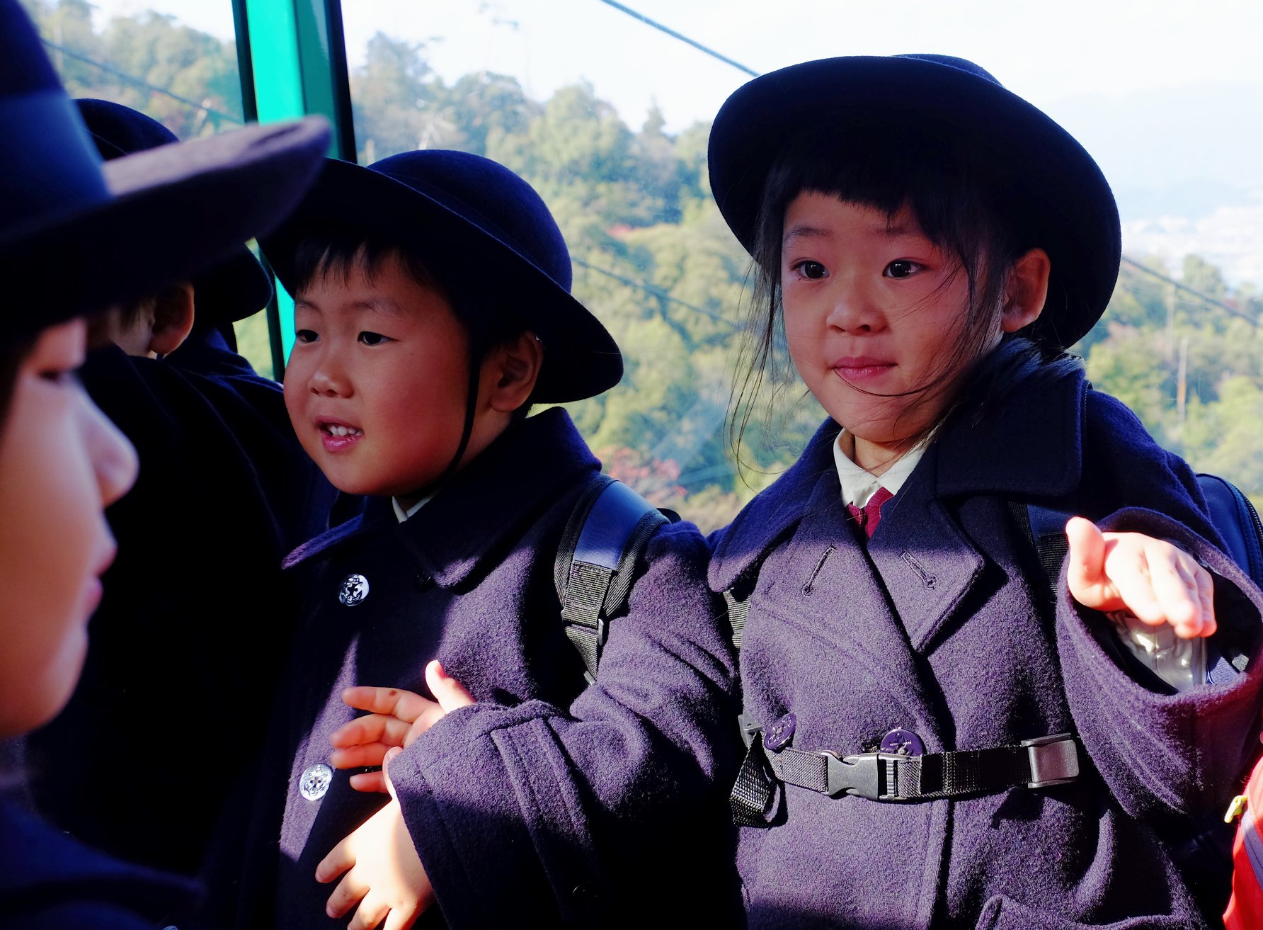 While sitting waiting at the rope way, a little boy sat beside us and started chatting away, of course in Japanese so we didn’t understand a word. We just responded to what we thought he was saying. He was part of a kindergarten class. His teacher thought it was funny and asked to take our picture with him. Sure! She got him to say “my name is…” We told him our names, that we’re from Canada and taught him a few words, like pine cone as he had one in his hand he seemed quite excited about.