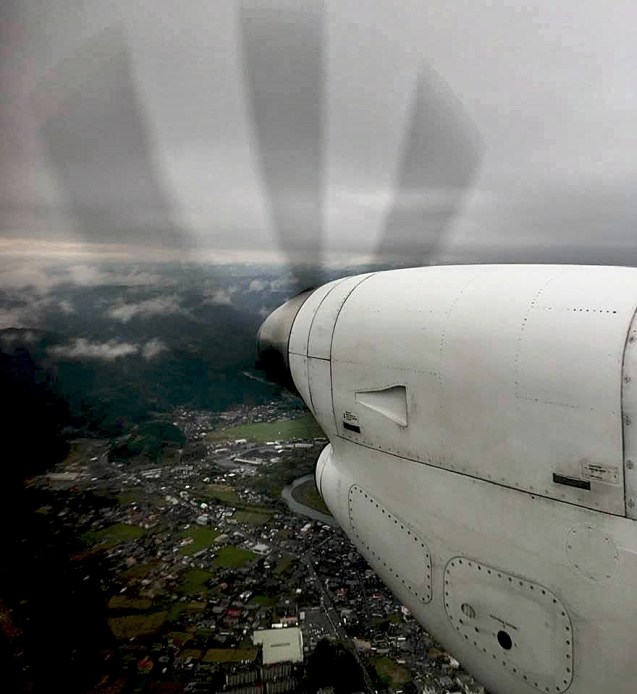 Upon returning the rental car the lady jumped in the car and brought us to the airport. It was a foggy, rainy, miserable day. A kind woman interpreted the announcements for us when it was apparent the plane may be delayed. If the incoming flight could see the mountain we could leave. If not, he would turn around and go back to Kagoshima. Love the matter of fact, clear communication!  Chatting with the others in a tiny airport is fun as you know everyone’s getting on the same plane.  We all had connections so prayed it would clear enough to go. Meanwhile we enjoyed conversation with an interesting Japanese couple who had been living and raised their kids in the US.  So embroiled in our conversation an airline person actually approached us and told us we had to check in now.  Everyone else had already done so.  Oops.