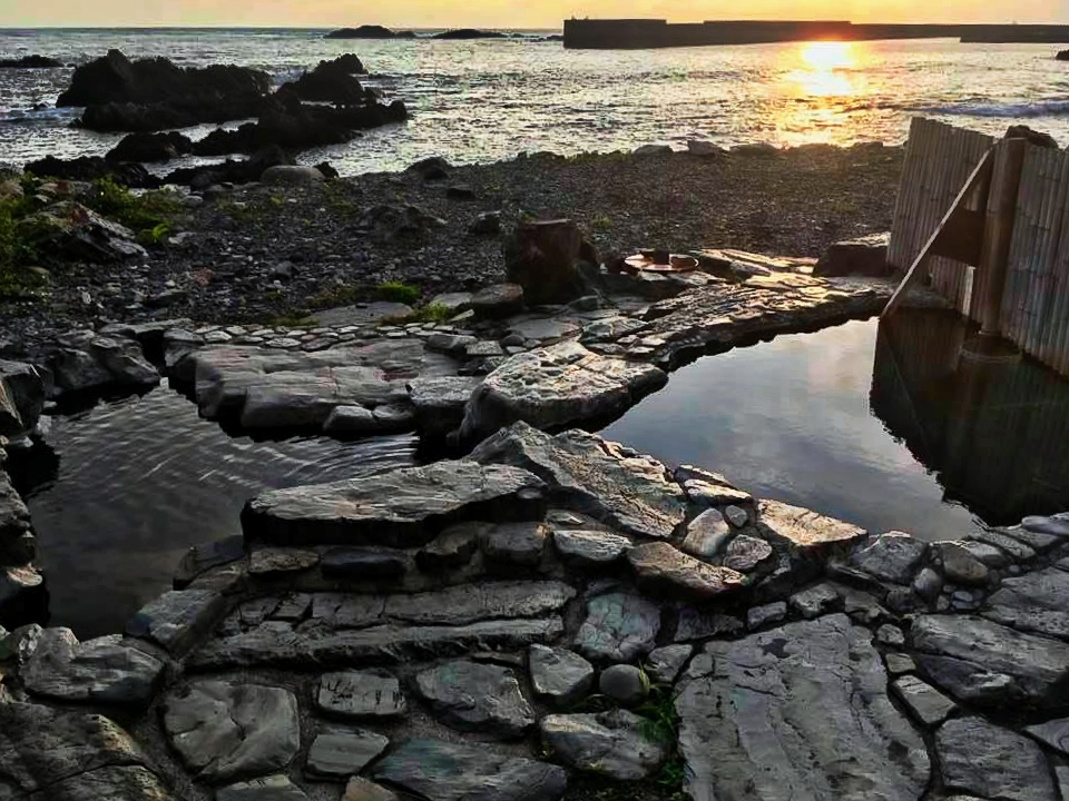 Next we stopped at Yudomari onsen. That’s just a place where hot water springs out of the ground and they’ve created nice pools for people to sit in. It wasn’t terribly hot but it’s right at the edge of the ocean and a really nice experience. We met a nice young couple from Israel whom we chatted with for a bit, then changed and headed back to Daichon house.