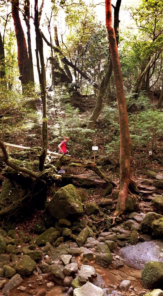 We headed up the mountain to Yakusugi Land. The road winds like crazy and goes down to one lane as you climb. There are mirrors posted on corners and the odd place you can pull over if you meet another car. Thankfully we didn’t meet many, including the two buses that make that trek a couple times a day!