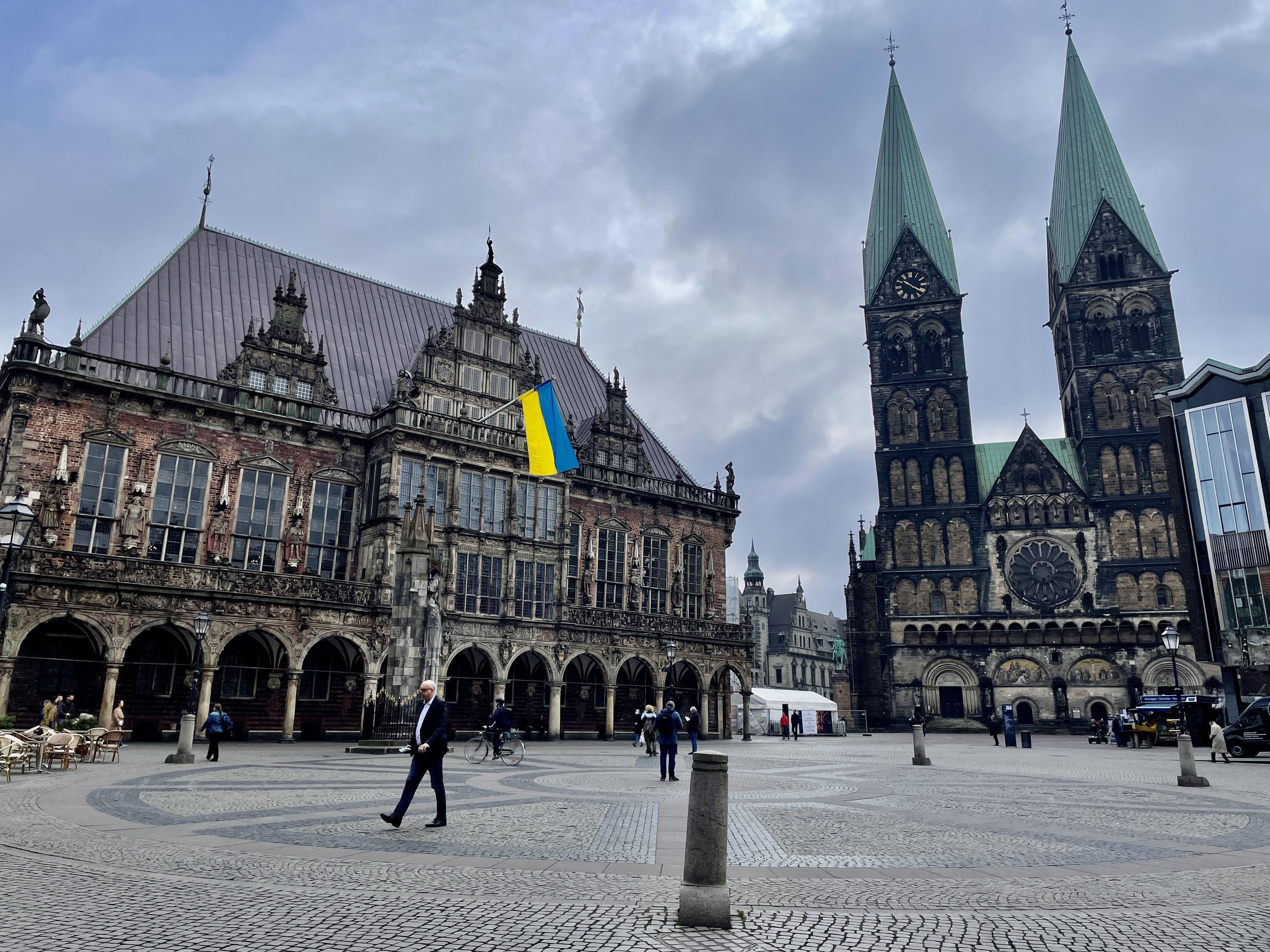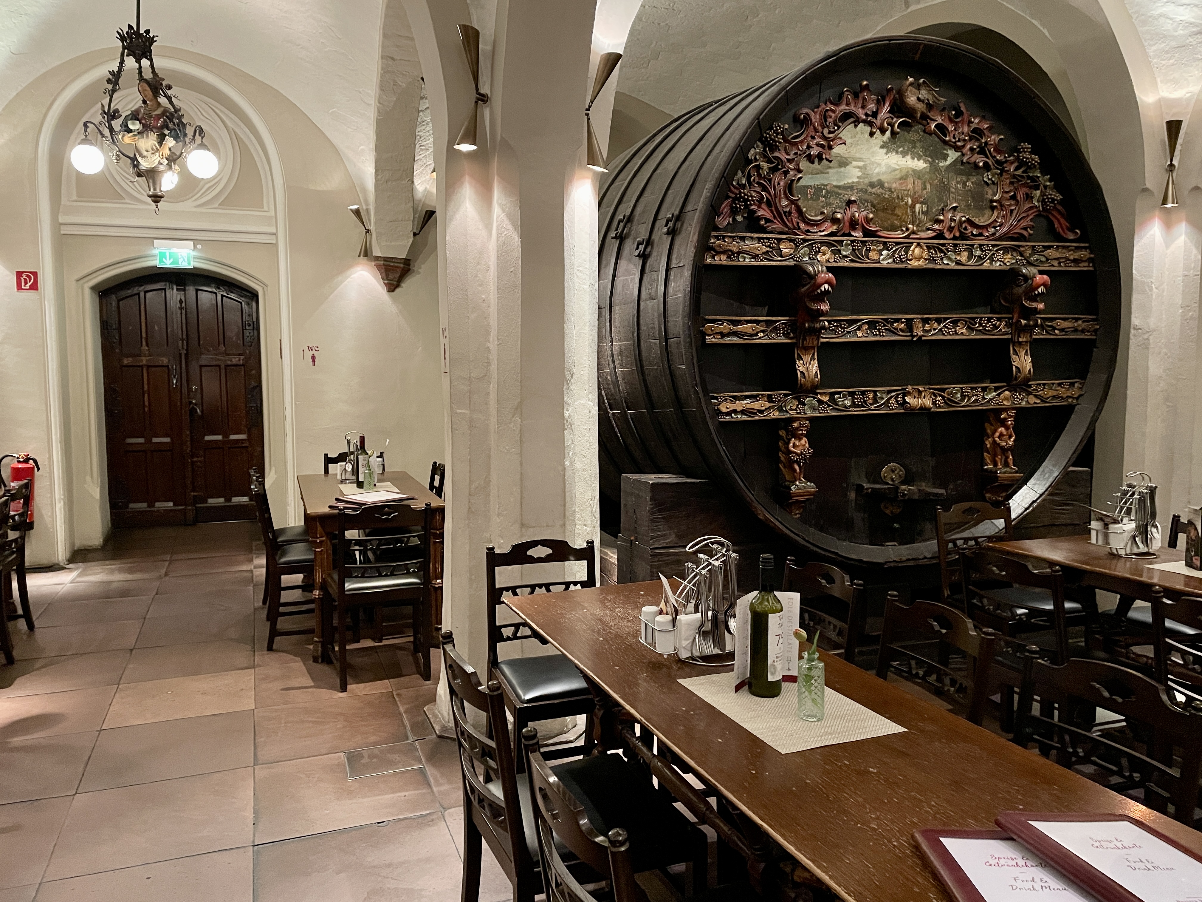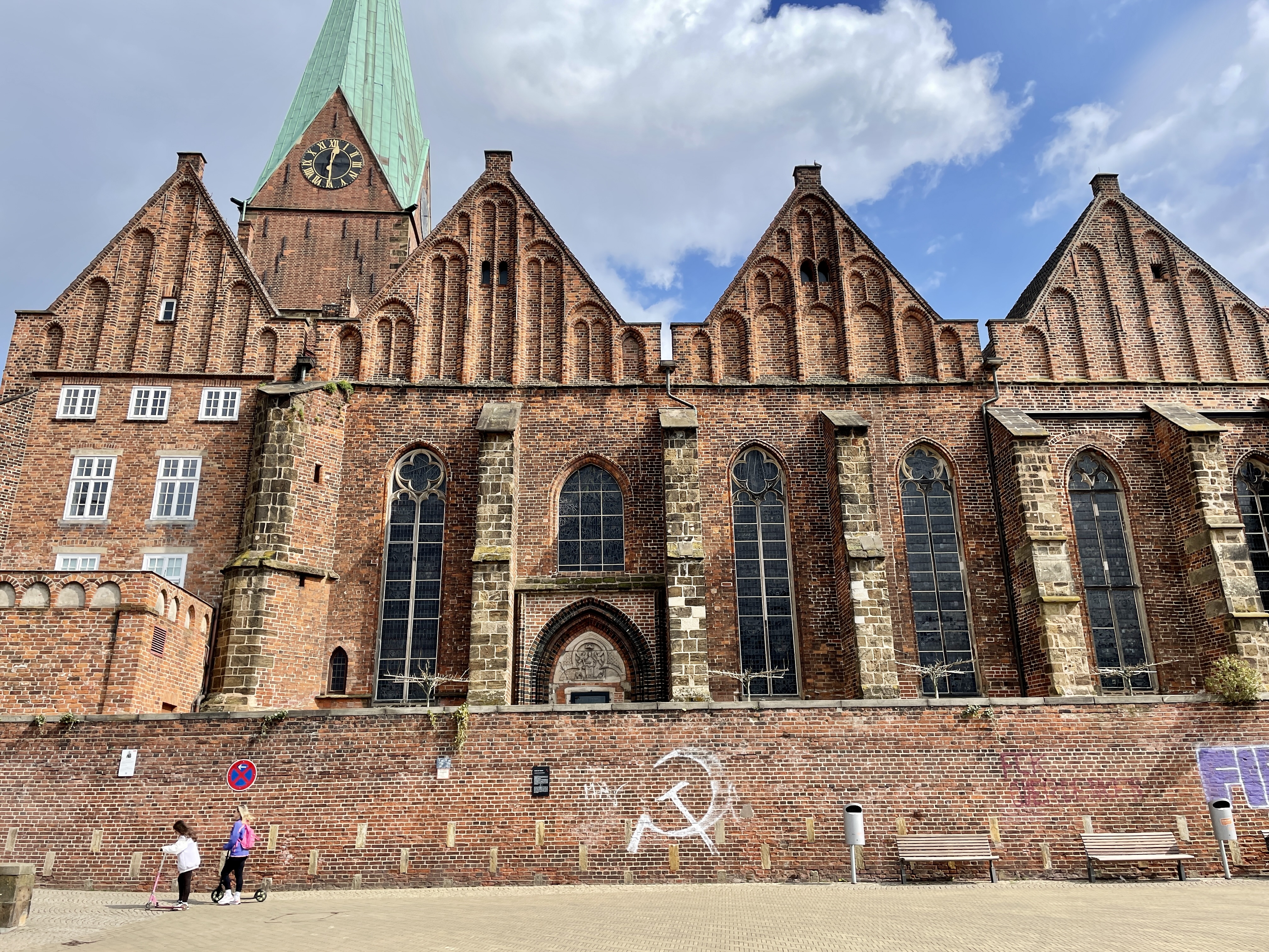 The hotel breakfast was really good and plentiful and we enjoyed it at our leisure before heading out to explore Bremen. We purchased tickets for a tourist “train ride” but it was pretty much a waste of time as the commentary was in German only. You’d think the guy who sold us tickets would have mentioned that. So we wandered around on our own and even attended a prayer service at the Liebfrauenkirche (church of our Lady) which was built in the 11th century. The service was in German (of course) but it was short (15 minutes) and interesting. A light lunch was in order at the Ratskeller as it’s in the basement of the town hall which was built in the early 1400’s. The pumpkin soup was good but it’s the ambience you go for.
