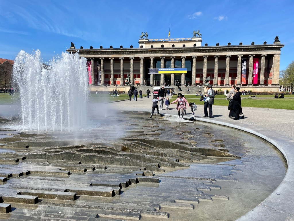 Next we decided to go for a good walk through the Tiergarten. It was once the private hunting grounds for rich people and was pretty much destroyed during the war. It’s now a beautiful park. We visited the memorial to the gypsies who were also persecuted by the third Reich. We got to the zoo and boarded bus 100, a city bus that visits all the tourist spots. We got off on museum island and walked around some more, stopped for ice cream and wandered some more. Berliners were out in full force enjoying the beautiful weather on a holiday Monday. There were people everywhere! Families enjoying picnics where ever they could find green space. Young people cycling, skate boarding, etc. Folks walking everywhere.