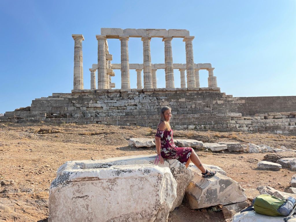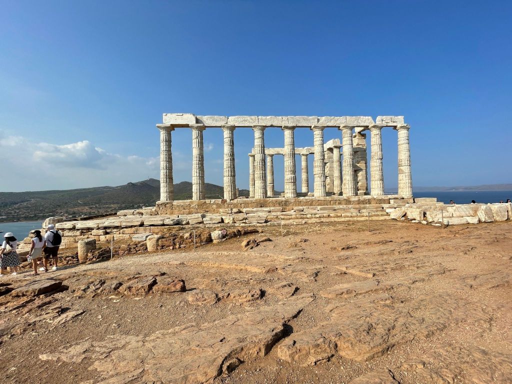Saturday. After grabbing a coffee and we got on the hop on hop off bus and toured the whole city. Then we got off and visited the Agora again so we could spend some time actually reading. We had purchased a five day ticket so we had plenty of time. You can pay €20 to get into the acropolis plus €10 to get into the agora each for one day or you can buy a five day ticket that covers both of them plus other stuff for €30 no brainer. After that we need our way to the Melina Mercouri square a to catch the tour of Poseidon’s temple we’d prearranged. It started pouring so we dodged in and out of awnings and umbrellas but still managed to arrive soaked. The sun came out and we were dry before the bus finally arrived. It left a half hour late and the drive took 1.5 hours. Not sure it was worth it as we barely got an hour there before we were rushed back in the bus.