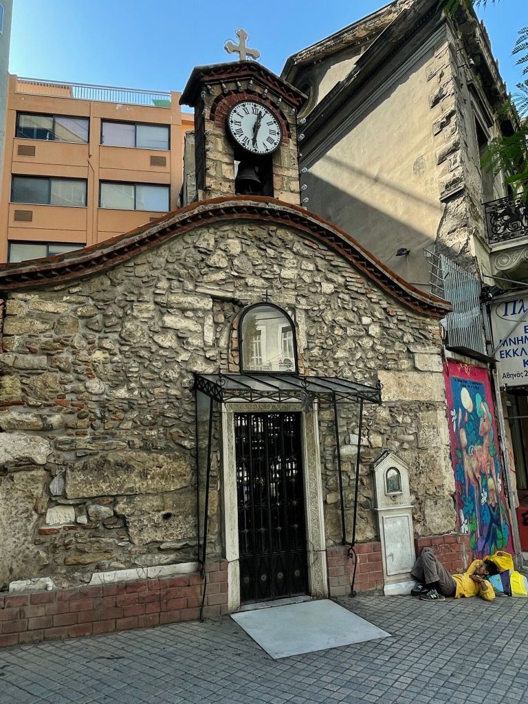 We arrived in Athens Thursday, August 25, 2022 and took the train from the airport to the city and started walking. 5 minutes in it started to rain. Then it started POURING and we happened upon a coffee shop so decided to enjoy a cup while waiting out the rain. 10 minutes walk from there we arrived at the Cosmos hotel. After checking in, Anita and I spent the day wandering around Athens and getting very lost. That’s not a bad thing. We find the most interesting things while lost. Eventually we found our way back to the hotel.