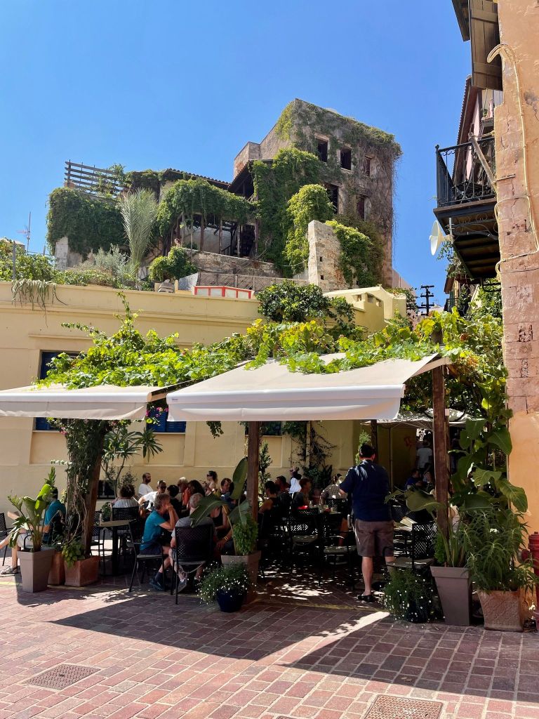We boarded the ferry an hour before departure, settled into our rooms and met on the upper deck where there’s a really nice bar. Our room on the ferry was comfortable and the hum of the engines together with the motion of the boat made me sleep like a baby. My alarm woke us up at 5.40 am. We met the group at reception and were some of the first disembark. After a 20 minute bus ride to Chania, we dumped the bags, walked around town and finished a massive breakfast at Remezzo by 8.30 am. That left a full day to spend exploring Chania