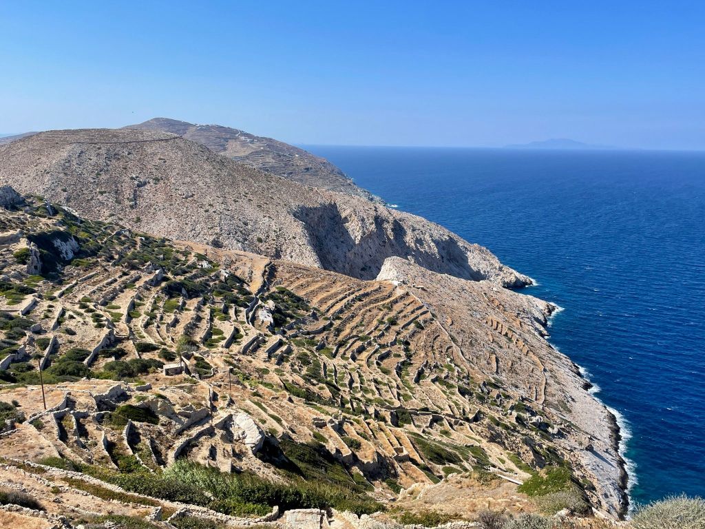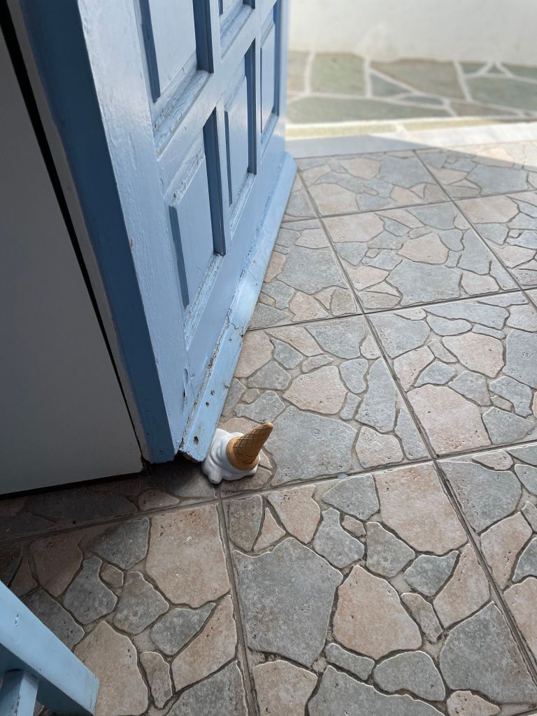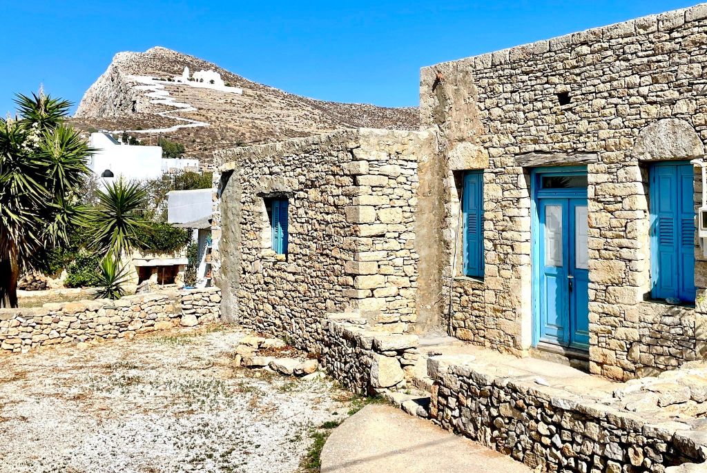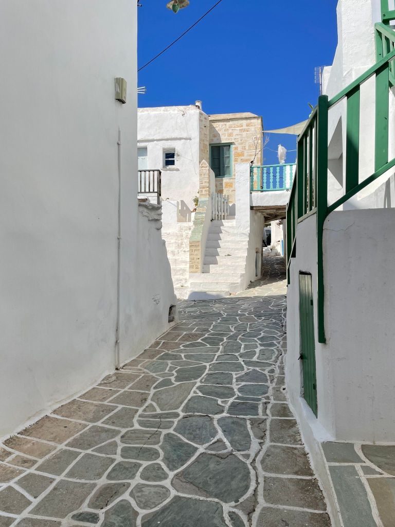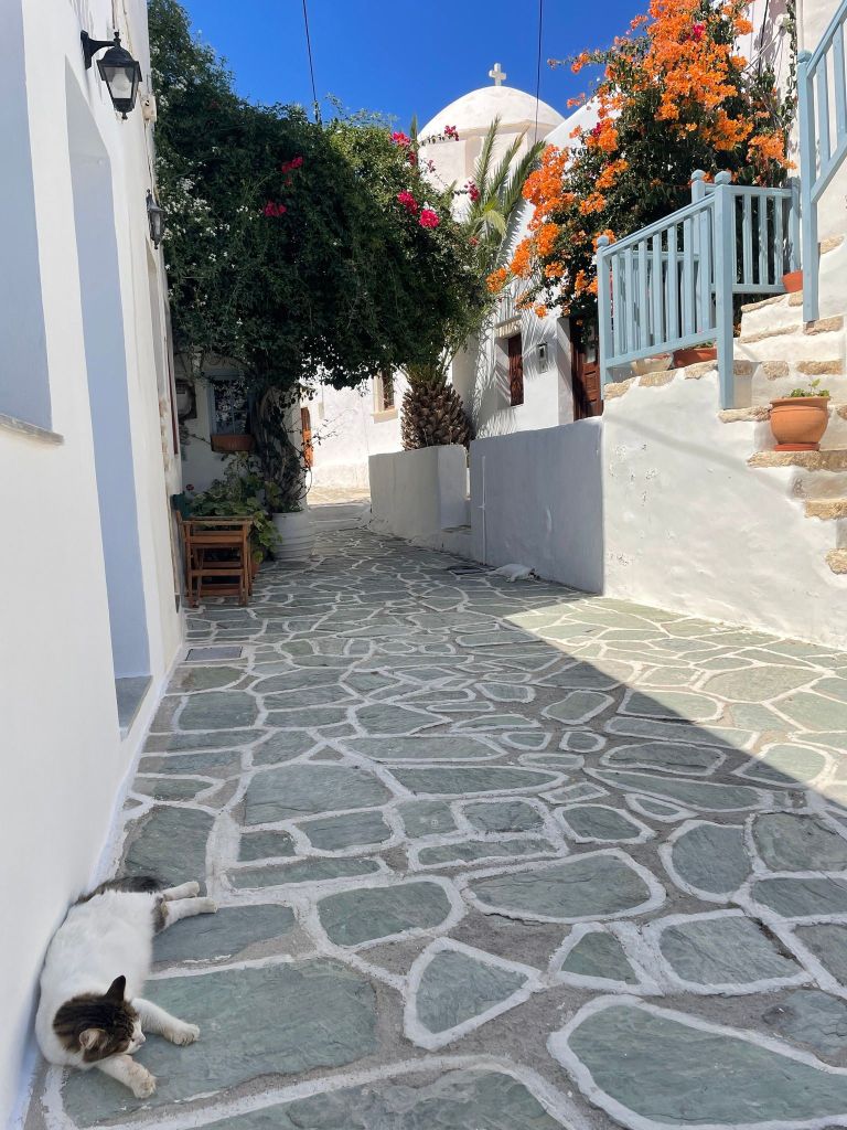 It’s our first day without the group. The taxi picked us up and took us back down the windy road to the port where we caught the ferry to Folegandros. As soon as we got off the ship we felt the difference in the vibe. Sooo much calmer and relaxed! Santorini is pretty but ugh. So many people! It took a bit but we found Eleni’s studios and Susie showed us our room.