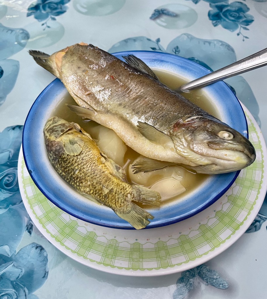 JC, Chloe and I met early to find a local breakfast of fish soup. I never would have found it without JC. The lady sat on the side of the street and we went inside a litle alcove with tables where she served us a heaping bowl of soup, complete with whole karache and trout. It was delicious and 25 BOB (about $5)per bowl and she’d refill the broth.