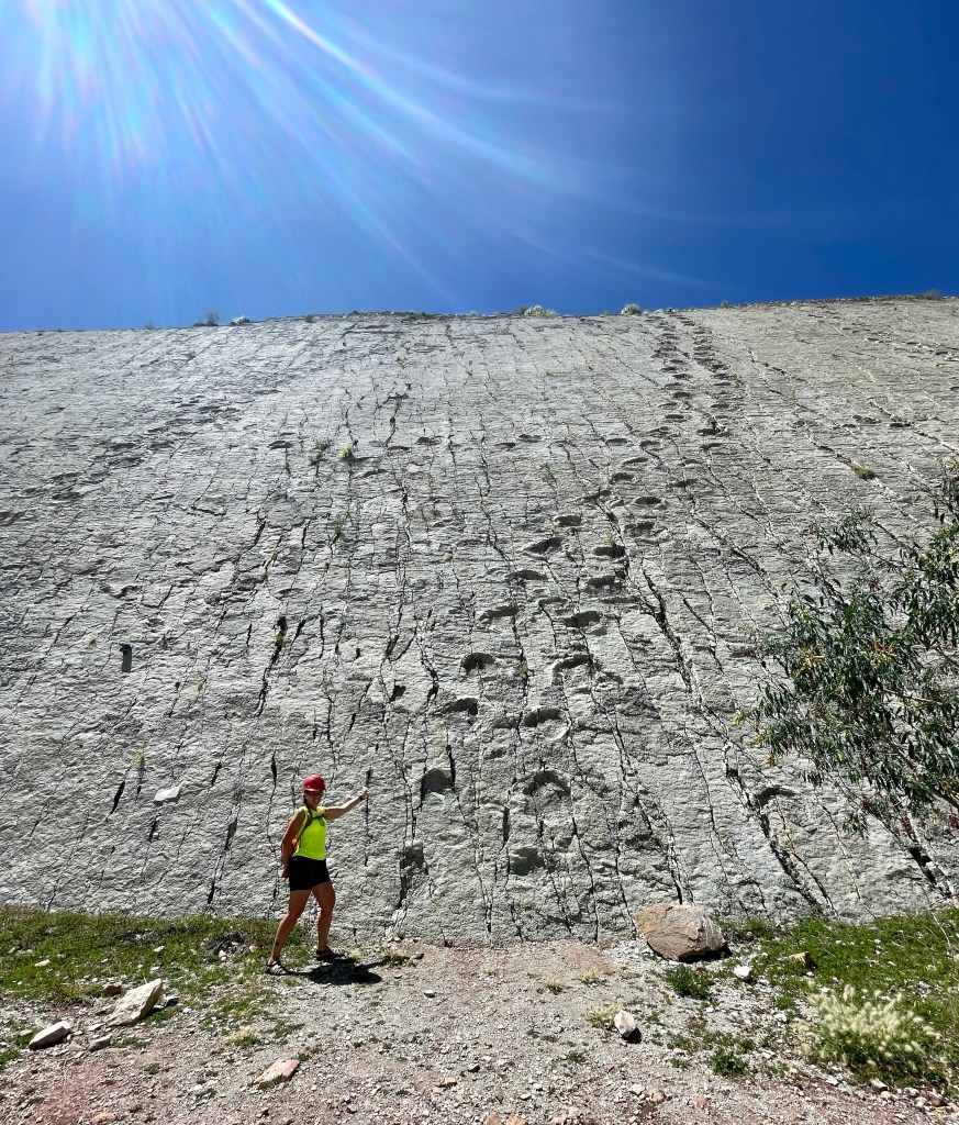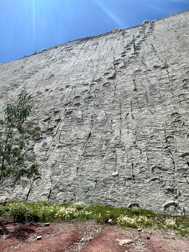 After weighing our options we all decided to hire a bus to take us to the Dinosaur footprints. I didn’t expect much but it sounded intriguing. It’s fantastic! There are tours at 12 and 1 so we got there for 12. The prints had been buried for millions of years until shifting tectonic plates pushed the land that had once been a lake into a vertical position. A cement factory mining limestone stopped when they discovered too much magnesium in the material. Someone noticed weird markings and they called palaeontologists. The rest is history. Now it’s well taken care of. A section of rock fell down with heavy rains a few years ago exposing more prints. This is a MUST SEE in Sucre.