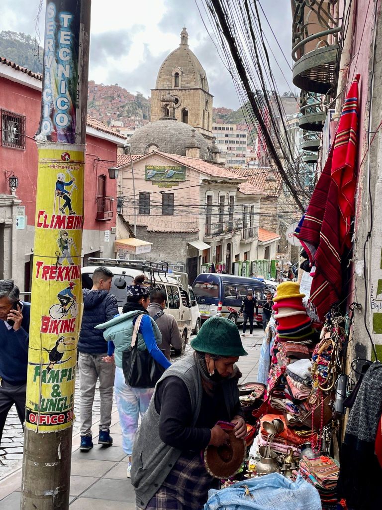 Due to protests the border crossing from Puno was closed so we ended up flying from Cusco, rather than bus. That meant night flights. UGH. We flew to Lima, arriving just after 11 pm then left the airport to re-enter for our international flight to La Paz. When asked how long they were staying in Peru, 2 in our group had said a week so the official wrote that on thier passport stamp. SO. When leaving Peru it looked like they had overstayed their time by an hour as it was past midnight by the time they went through customs. They were taken aside and charged a fine. Twas only 5 soles but the stress..!! Lesson learned. Mine said 60 days. Probably cos I told him I THINK about 10 days. lol So, when entering Bolivia I said 14 days even though we’ll be here about a week.