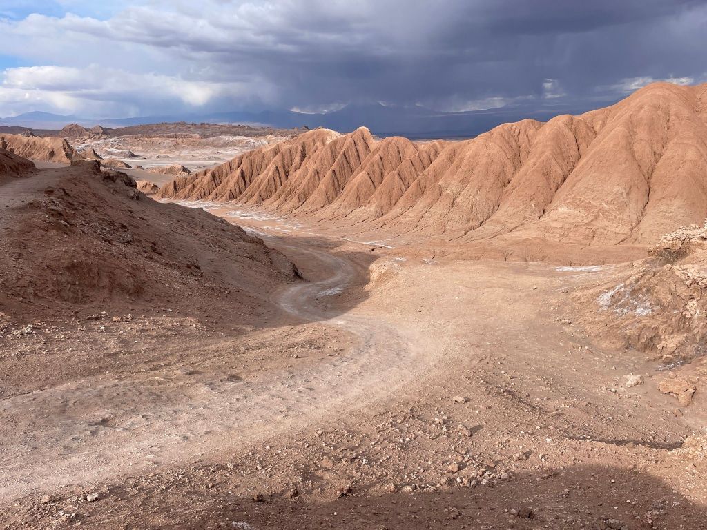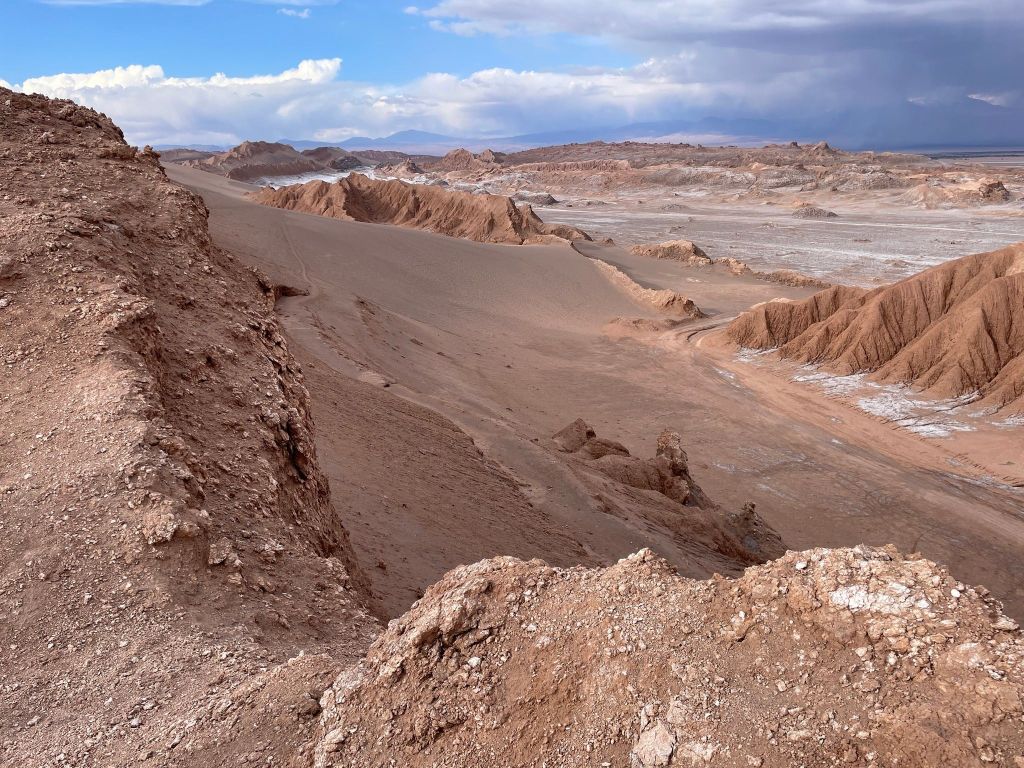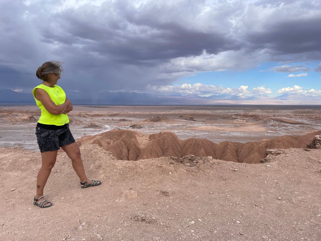 Neither my debit or credit card wanted to give me money in San Pedro, even using a Scotia bank ATM. UGH. Good thing my room mate Davindar had been successful so I could borrow money from her. We enjoyed wandering the town and eating a leisurely breakfast before meeting the others for our trip into the desert yet again. It’s different here. There’s a salt flat but it too is completely different from Bolivia. There are lots of hills and dunes and it was fun to climb them without having to deal with the effects of altitude.