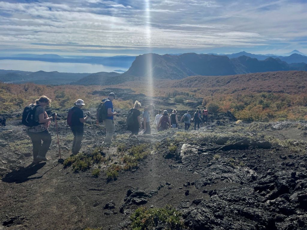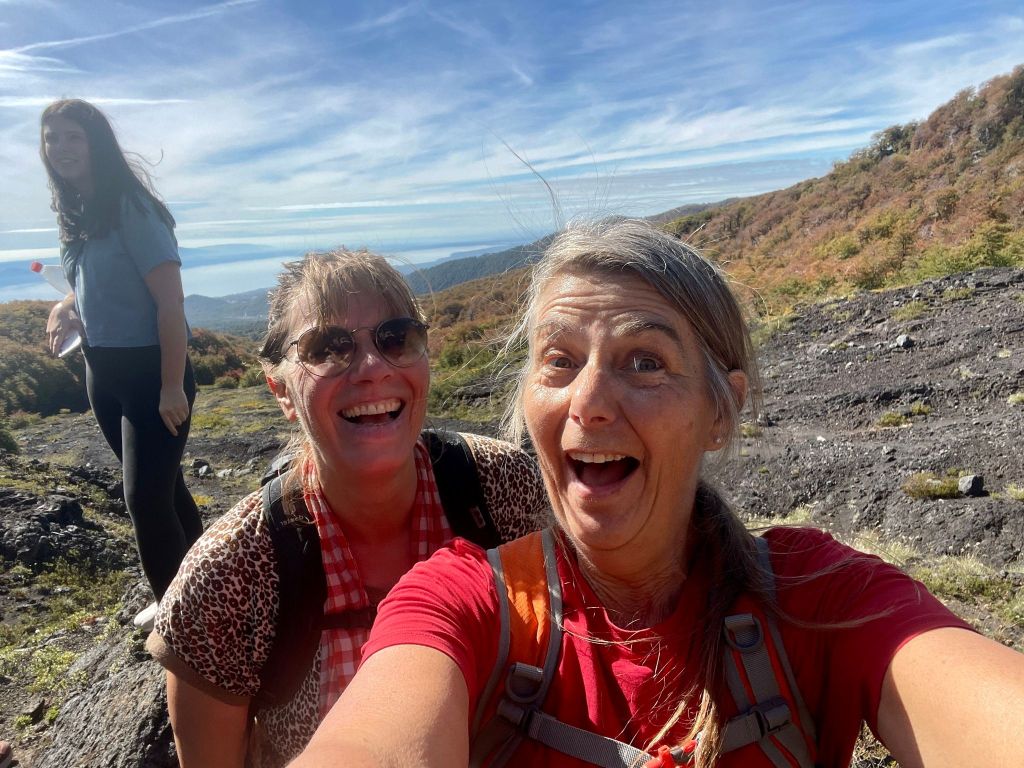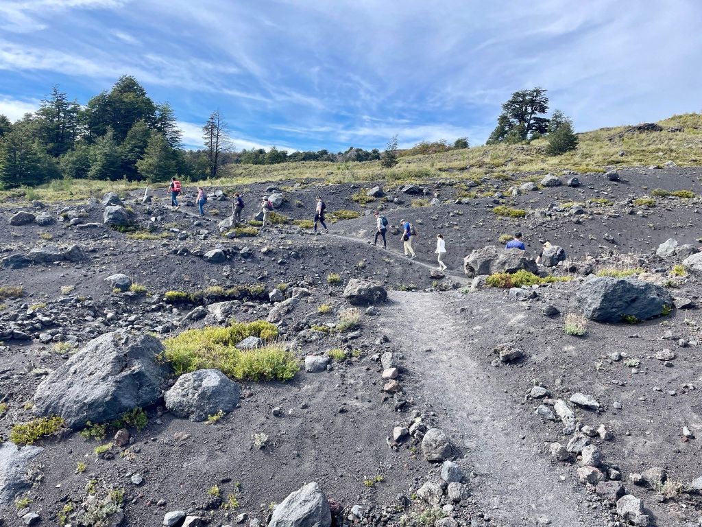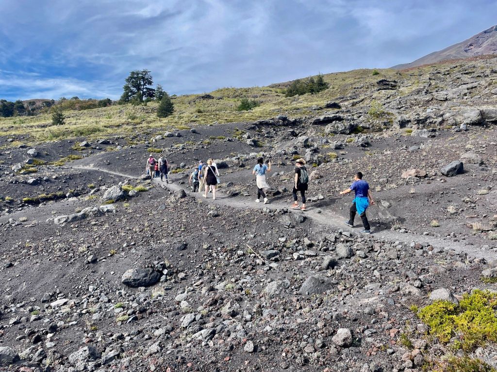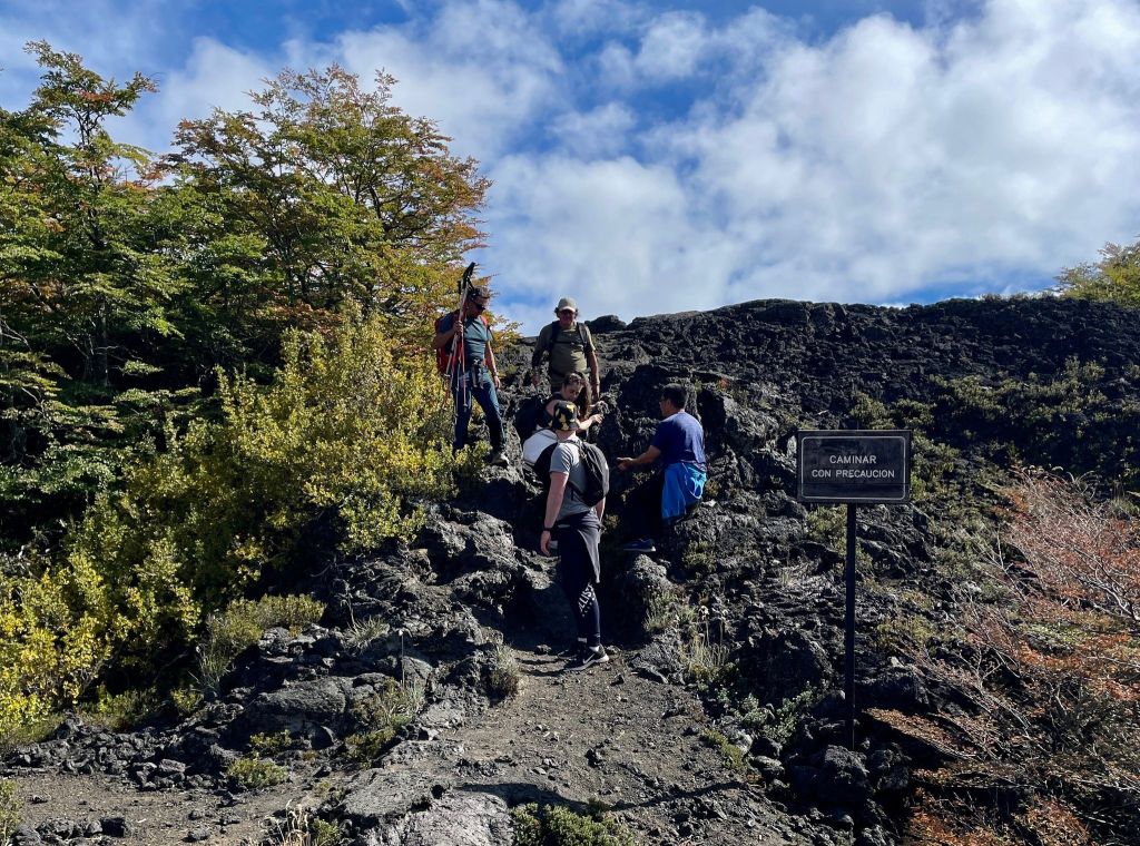 Patrice from a local tour agency came and gave us a bunch of options for our short time in Pucon. All were VERY expensive. Some of us decided that hiking a volcano tired after no sleep on a night bus was a good idea. He said it was an easy hike if you’re used to hiking. Well. Maybe if you’re used to hiking in Chile?? None of of us found it easy. The first 3 km were uphill, sometimes scrabbling up volcanic rock and occasionally having to almost go on all 4’s. Maybe “technical” is the correct word? We couldn’t go higher as the volcano has been misbehaving and there was potential for major eruption. It often spews lava. We came down through the forest where there was still lots of up and downs over roots and rocks so I still had to watch my feet the whole way. It was a nice hike though and our guide provided lots of info about the volcano and the town.