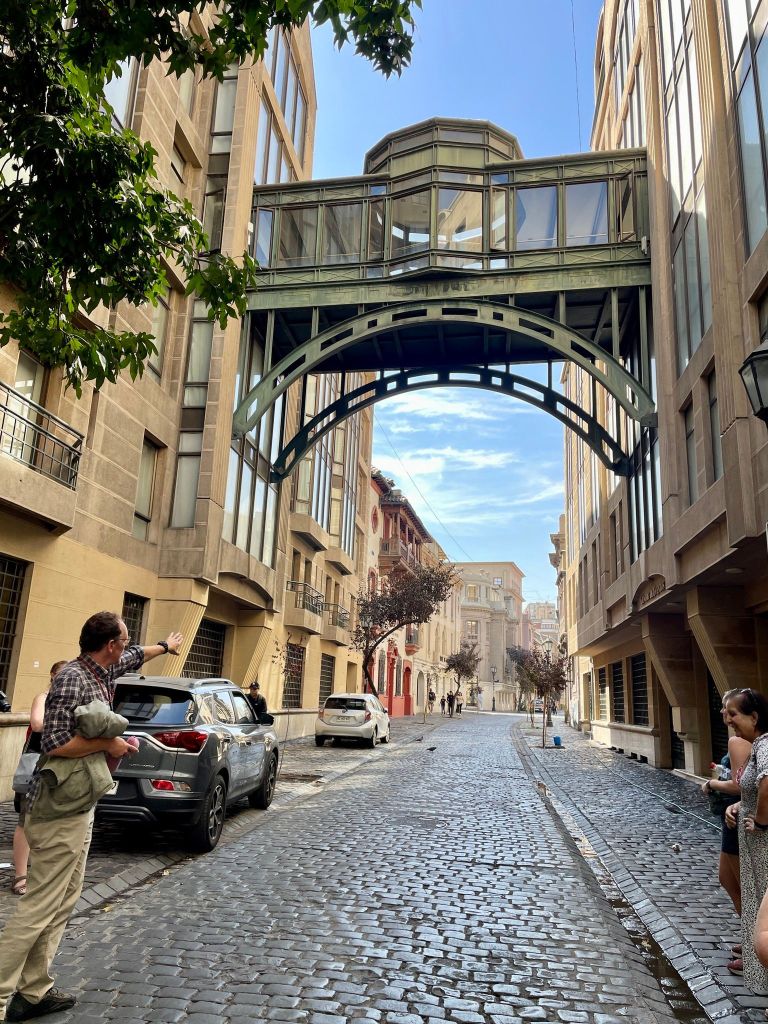 The hotel breakfast was good enough to keep us going for several hours. Chloe, Davindar and I called an uber to take us to the central plaza rather than take the metro. It wasn’t much more for the 3 of us and we needed to be there at 10 for a free walking tour. We learned a LOT of history of which I retained maybe 10%. After coffee together we split up. Davindar and I set off to find the funicular and cable car. That ended up being perfect as we walked maybe 30 minutes to get to it. The funicular got us to the top where we spent some time and the cable car came down the other side, not far from our hotel in Providencia. We got back in time to join the meet up with the new group. We said good bye to the 10 members of the group leaving and 4 of us joined the next group that goes as far as Buenos Aires.