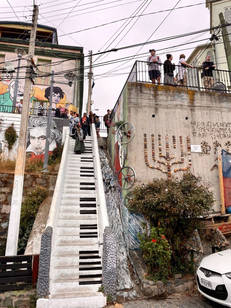 We spent the night in an old, unique hotel called the Reina Victoria. On the way to dinner we took a funicular up a hill. Valpairaso has many hills and several funiulars.