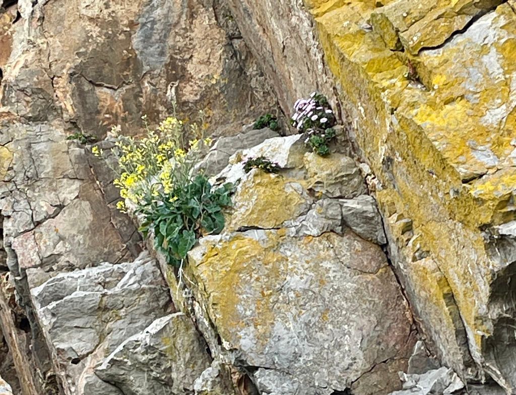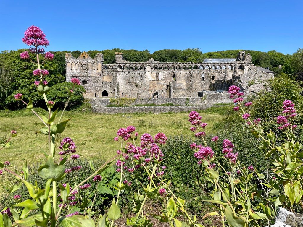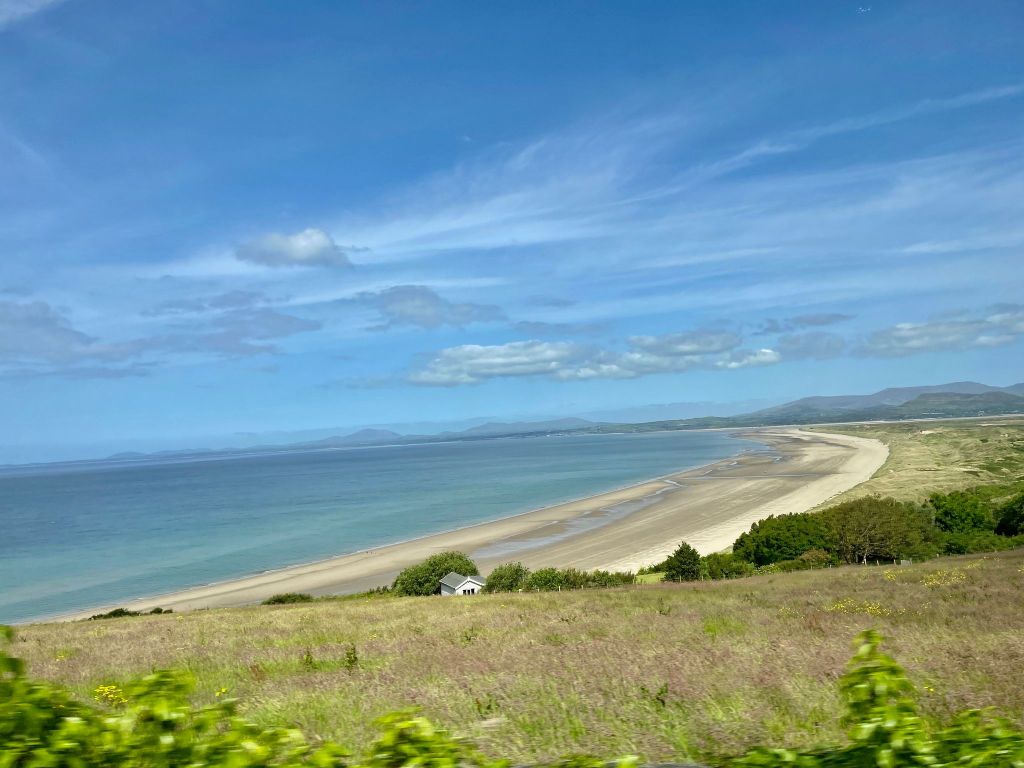 The drive is gorgeous no matter where you are in Wales. The narrow lanes are lined with spiraea bushes, lupines, foxglove, buttercups, queen Anne’s lace and sometimes even bluebells. Sheep graze everywhere and sometimes cause traffic jams. Seascapes are wide expanses of beautiful beach or craggy, rocky outcrops. All is green.