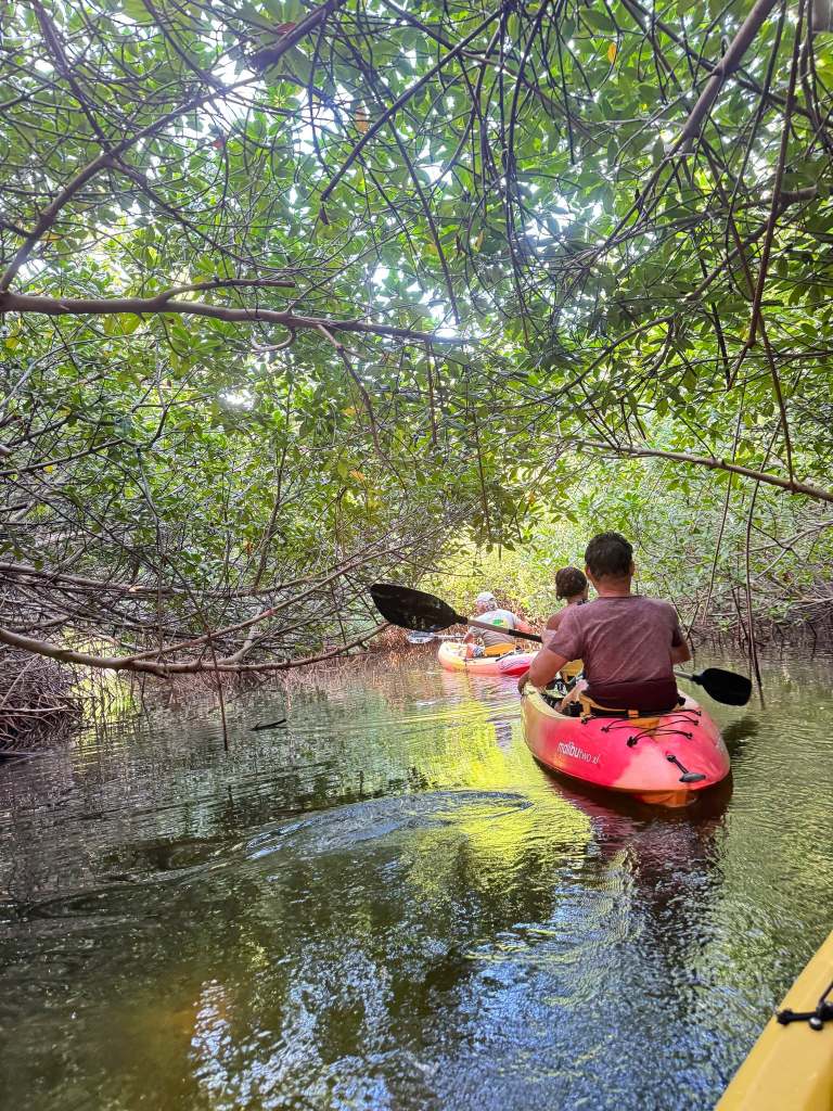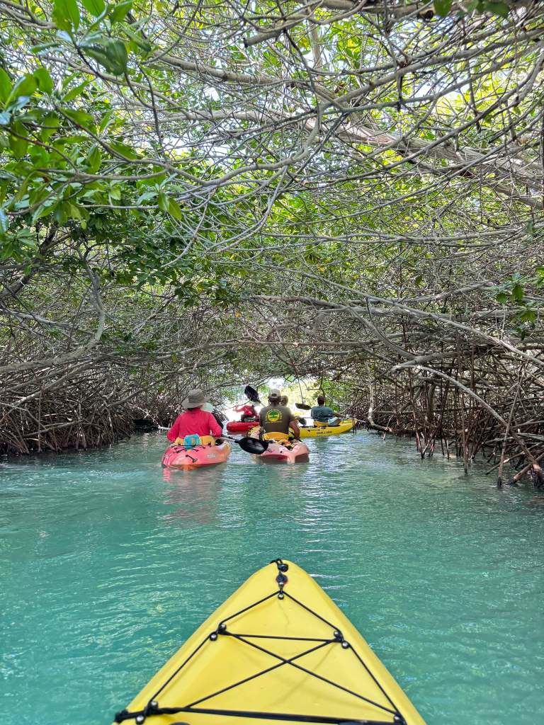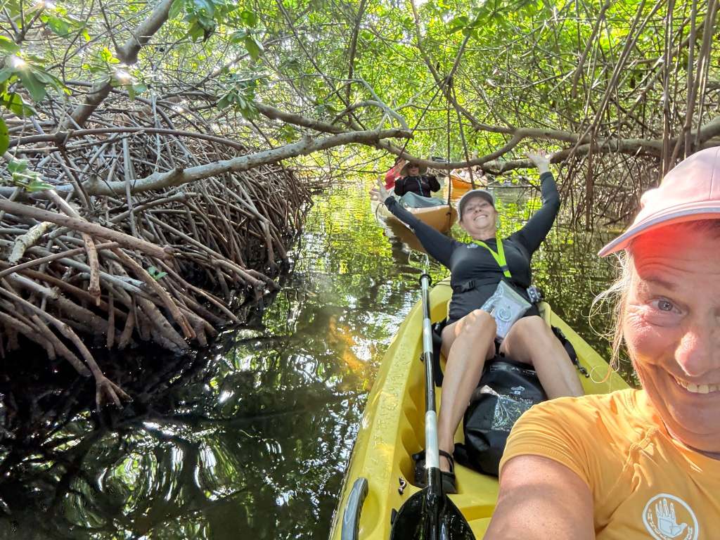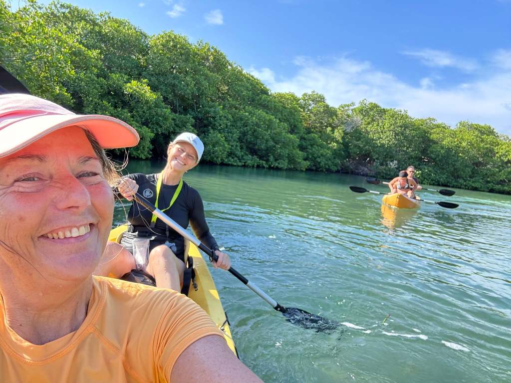 One day we booked a kayak and snorkeling tour of the mangroves. Getting there is an adventure. Apparently the road is graded once a year, just before Easter. The little Subaru was fine. Laura was a little frazzled!