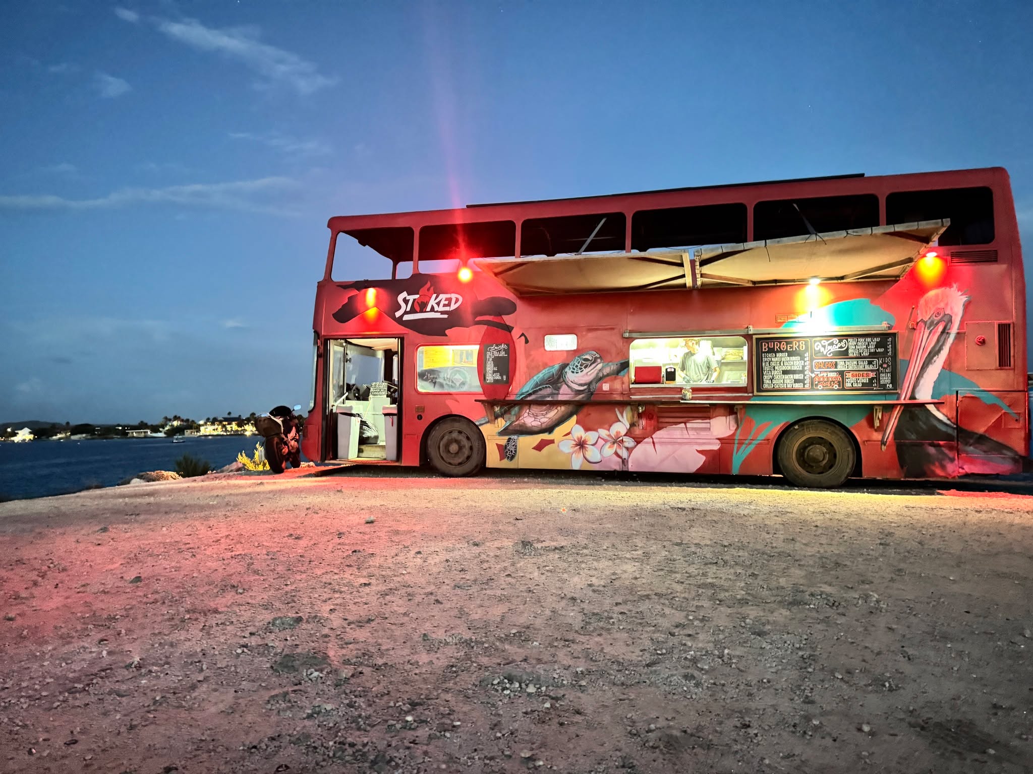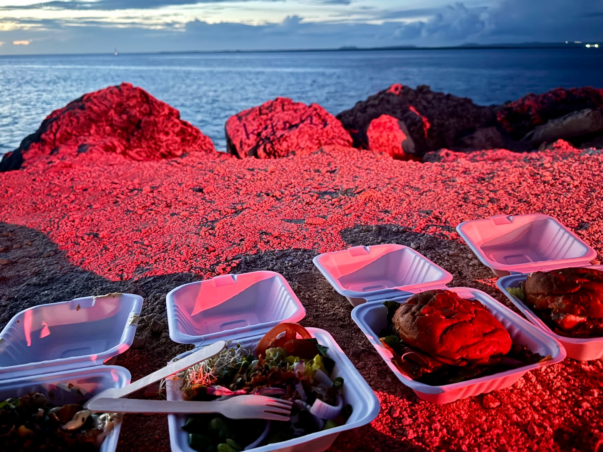 We enjoyed many good meals on Bonaire. One of our favourites was at the Surinam restaurant right at the Lodge. Another was the food truck on Te Amo beach. We brought chairs and enjoyed the sunset with a burger.
