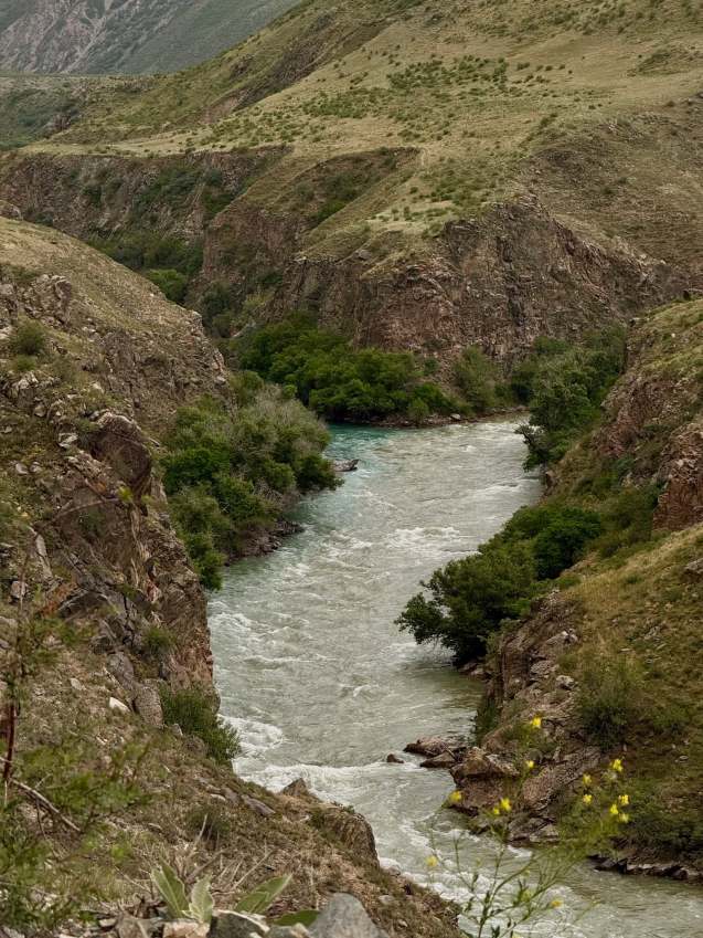 Next we drove to Jetty Oguz then on a dirt road to find a picnic spot. We wondered if this spot was worth the drive as it was pretty rough. You can see by the pictures it was worth it. The grassy slopes were covered in wild flowers. Cows grazed randomly and many families dotted the roads, enjoying a peaceful Saturday by the river.