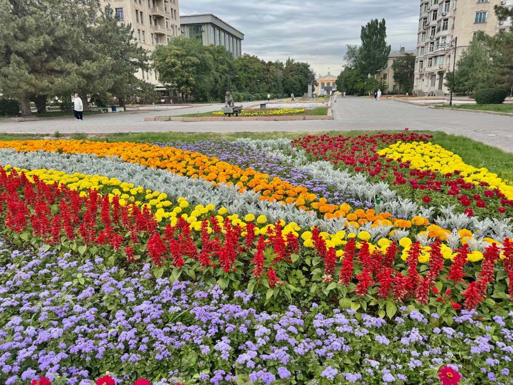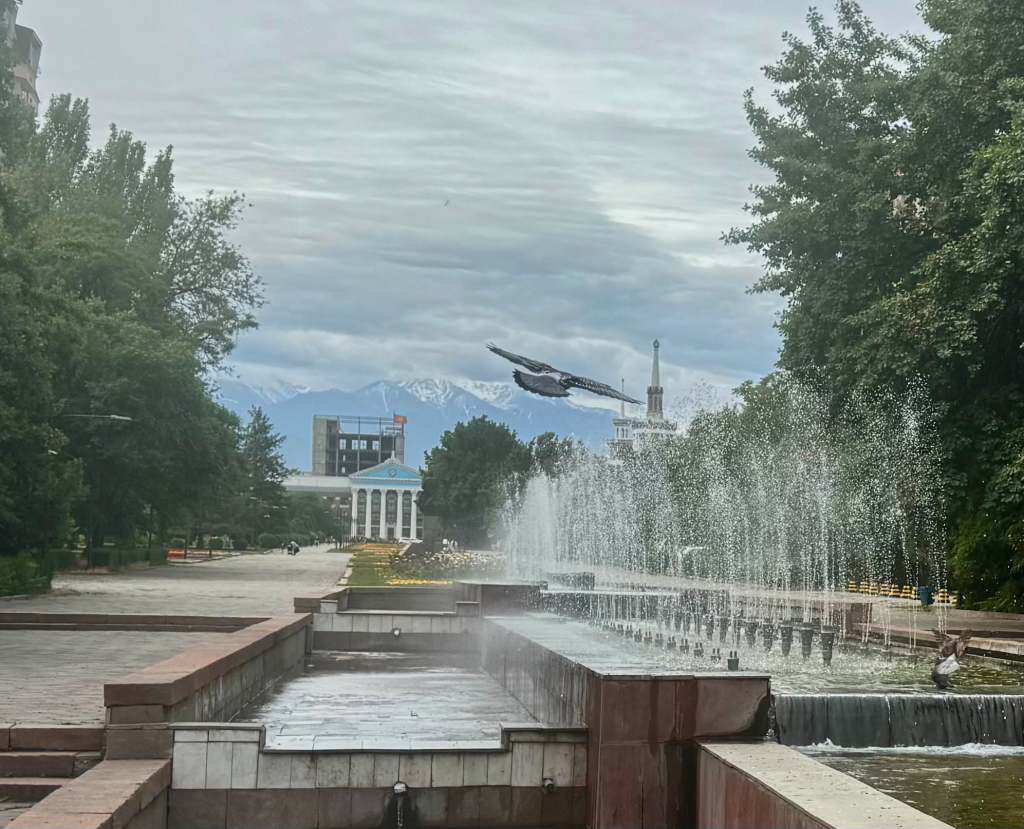 We checked into the Golden Hotel, cleaned up and set off to explore. A couple hours of wandering showed a much better view of the city. It’s full of beautiful, treed parks with lots of roses, fountains and flower beds. We happened upon the changing of the guard ceremony at Ala-Too Square and Victory Square. Finally, exhaustion took over. We spent the rest of the day planning what to do over the next few days and drinking tea. We tried hard NOT to fall asleep. The best thing for jet lag is to get into the rhythm of the new time zone as quickly as possible. By 8 pm we were sound asleep