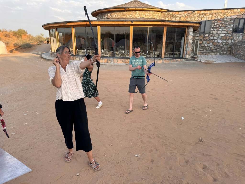 The yurt camp Sputnik Navoi was a pleasant surprise. We practiced our archery skills (seriously lacking) and walked to the top of the dune to watch the sunset over the desert. Beautiful!