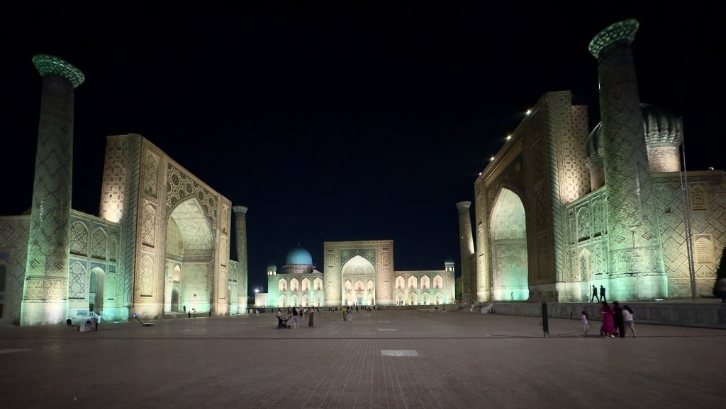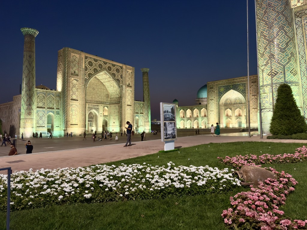 Samarkand is beautiful. 13th century buildings have been restored to their former glory. Every night there’s a light show depicting the history of Uzbekistan in Registan square.
