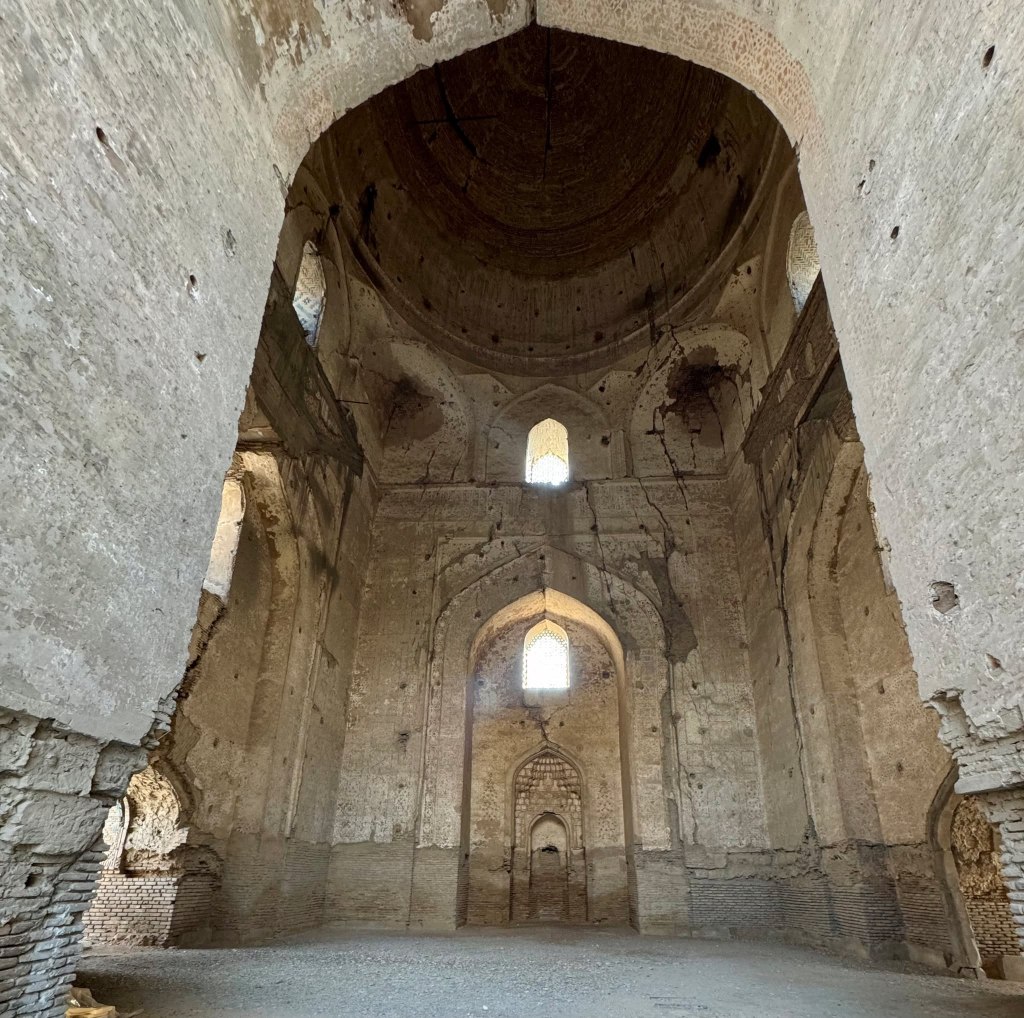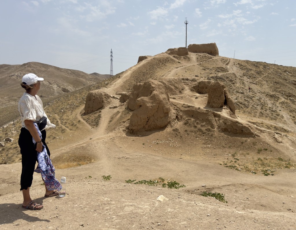 Up and out early we headed out into the country side. First stop was The Nur Fortress, also known as the Fortress of Alexander the Great. It is located near Nurata, Uzbekistan, and is believed to have been built by Alexander the Great in the 4th century BC. The fortress was intended to protect the region, particularly the city of Marakanda (modern-day Samarkand), from northern nomadic raiders, according to VisitSilkRoad. Nurfortress is situated on a hill, offering a strategic vantage point for defense.