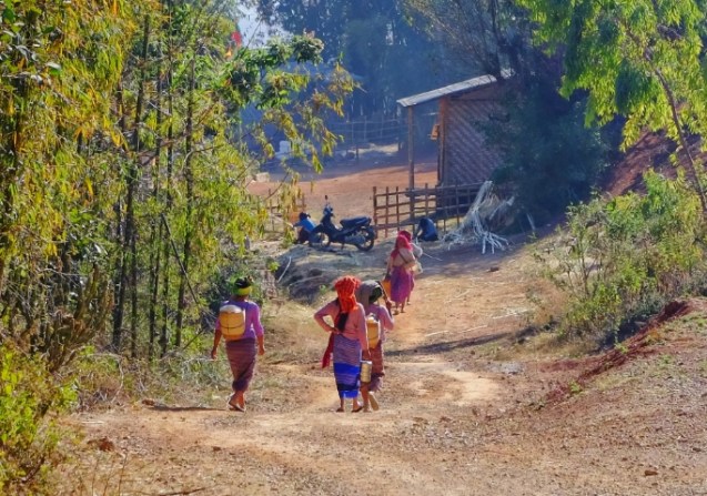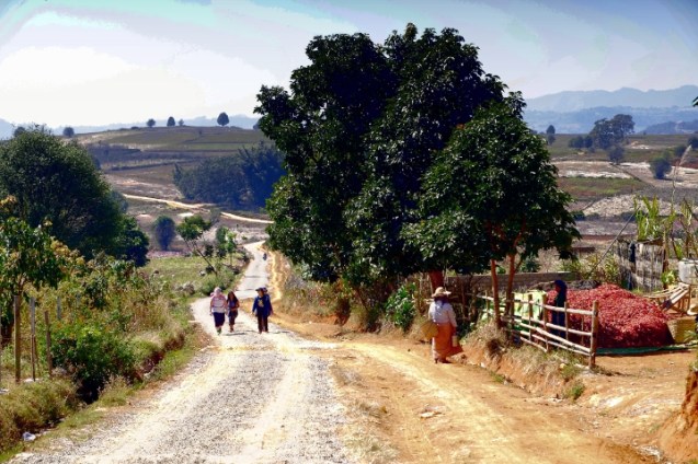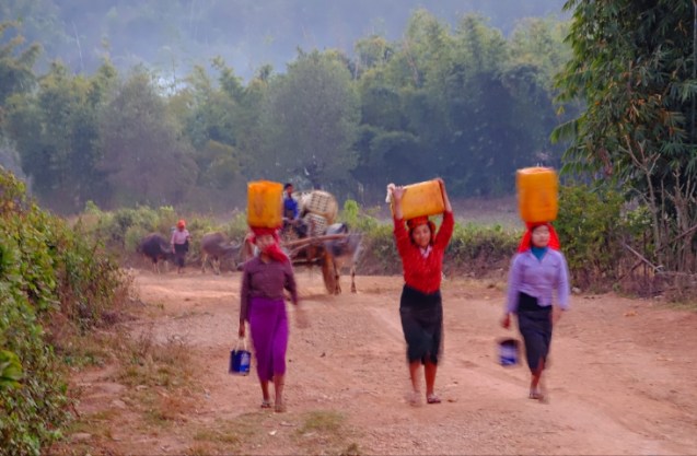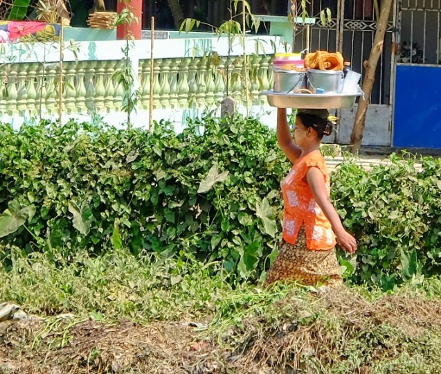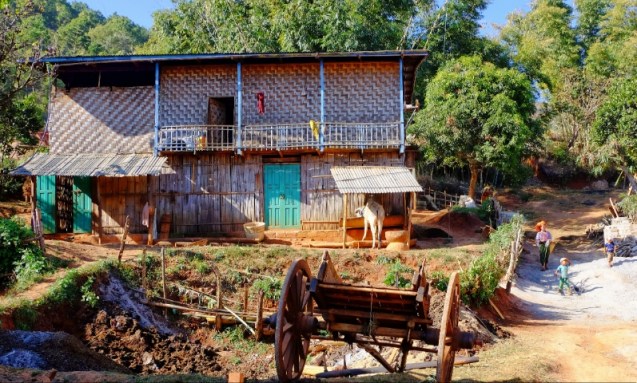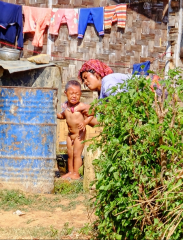 The journey is often an adventure and today was no exception. We walked to the pick up point just outside the village and climbed into our chariot which today was a suzuki pick up with bench seats. Two of our rafting captains chose to ride on the roof. 20 minutes in we stopped at a village where they ordered food for lunch and Sue and I went for a walk. Back in the truck for the next two hours and the roads got progressively worse. The driver was quite skilled as there were mud bogs that I’m sure mired many a vehicle