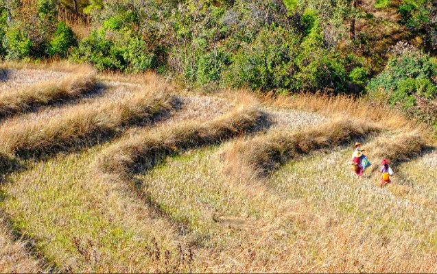 Government harvesting rice. Local farmers can’t afford this equipment