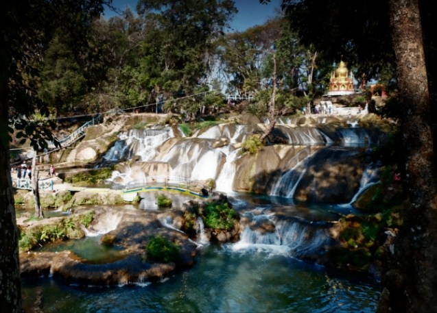 Over rough roads, wooden bridges and some that looked like goat paths, we drove for 2.5 hours before reaching the village and river. We crossed a rickety swing bridge and down a path to the river where I swam to the other side for the “hot spring”. It was just a hole in the rocks with warm water in it. It was a nice swim anyway and good diversion.