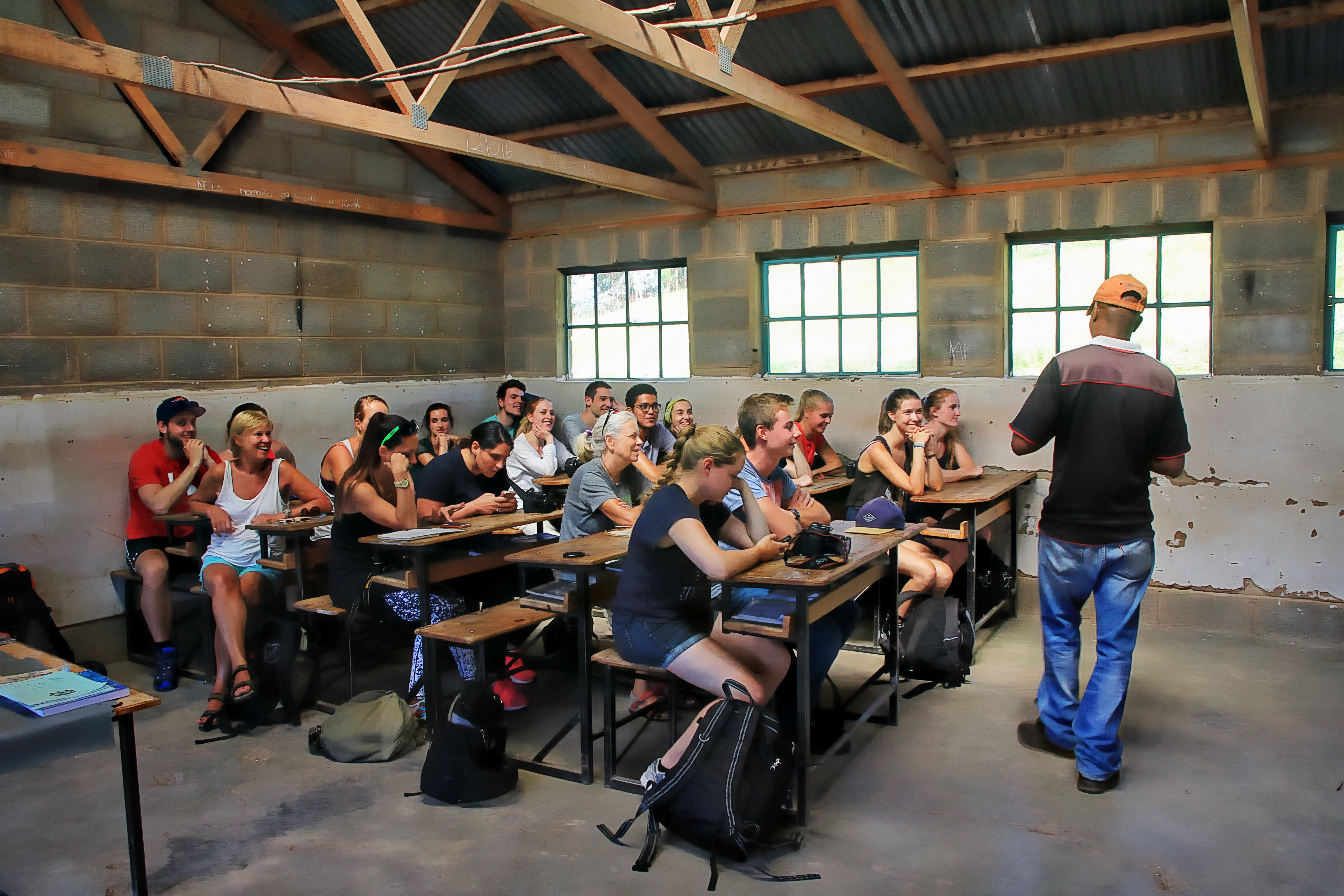 We had lunch on a rock overhang with some ancient cave paintings and headed back to the school, back in the van and to a village where we met a healer. The Sangoma told us how he ended up with the career and what he does. It’s interesting that he works closely with medical doctors.