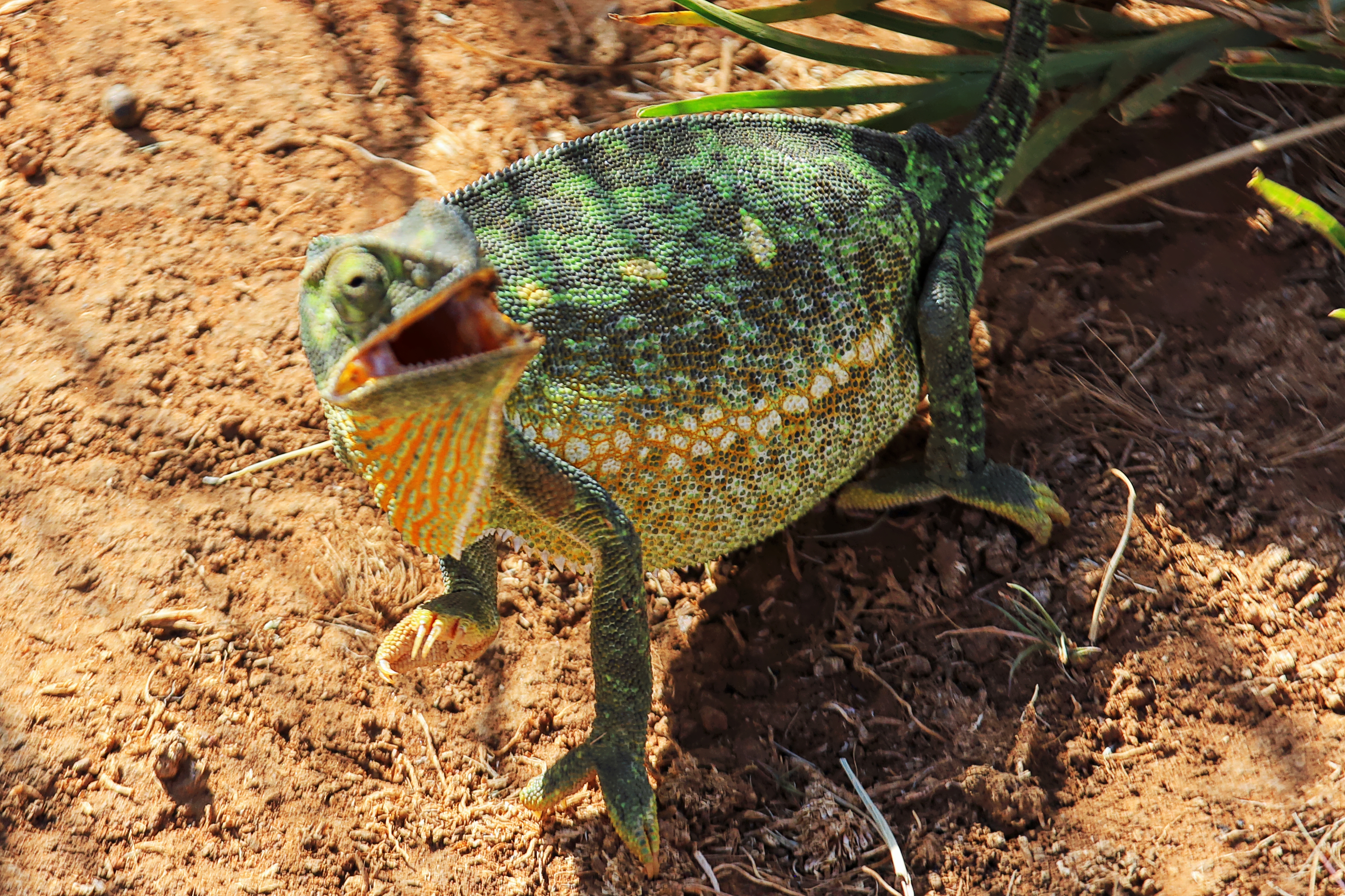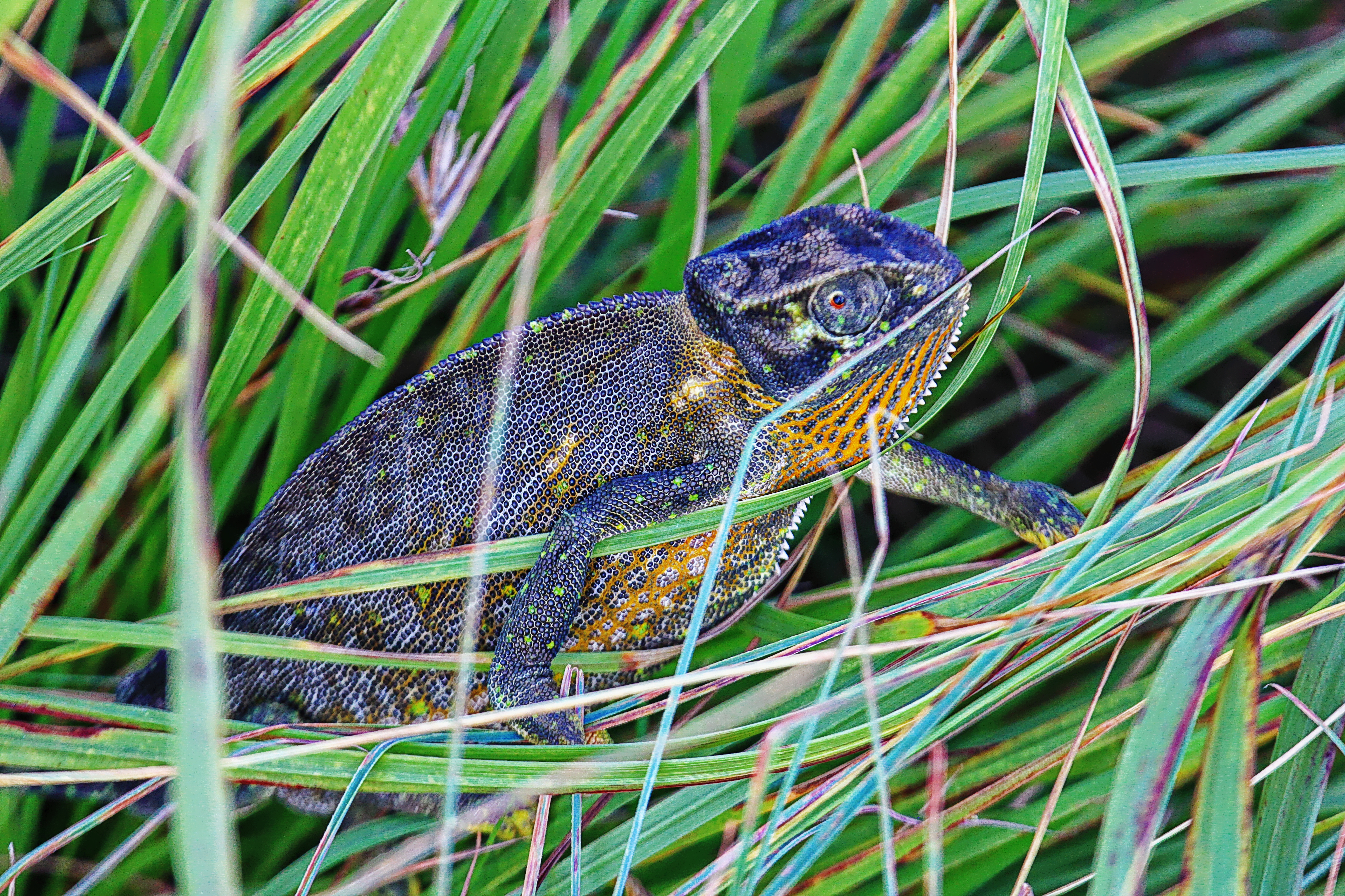 Chameleons are the funniest creatures. I almost stepped on one on the lawn and on the trail