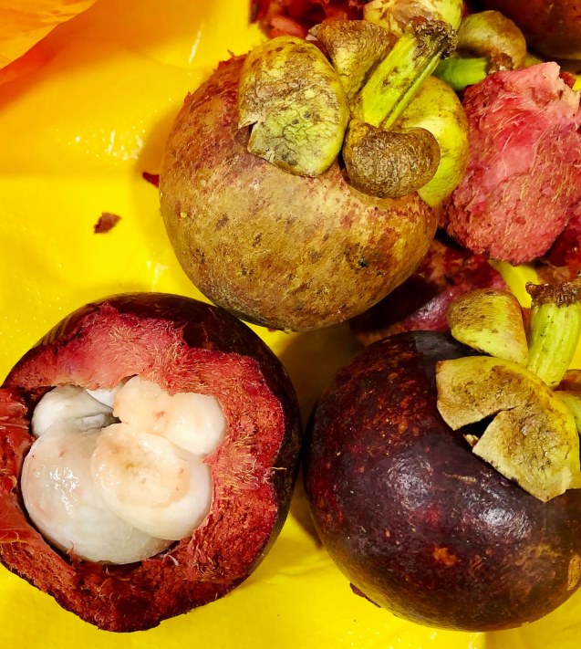 Mangosteen!!! We can’t get these at home so we bought another bag of them and ate them for dinner. YUM!!